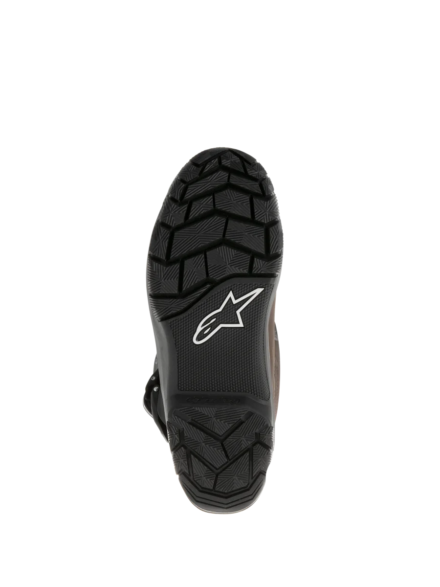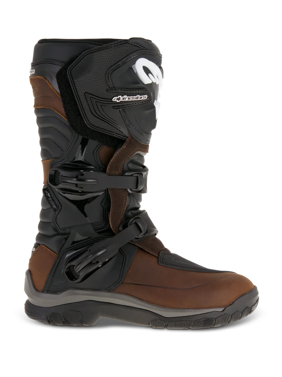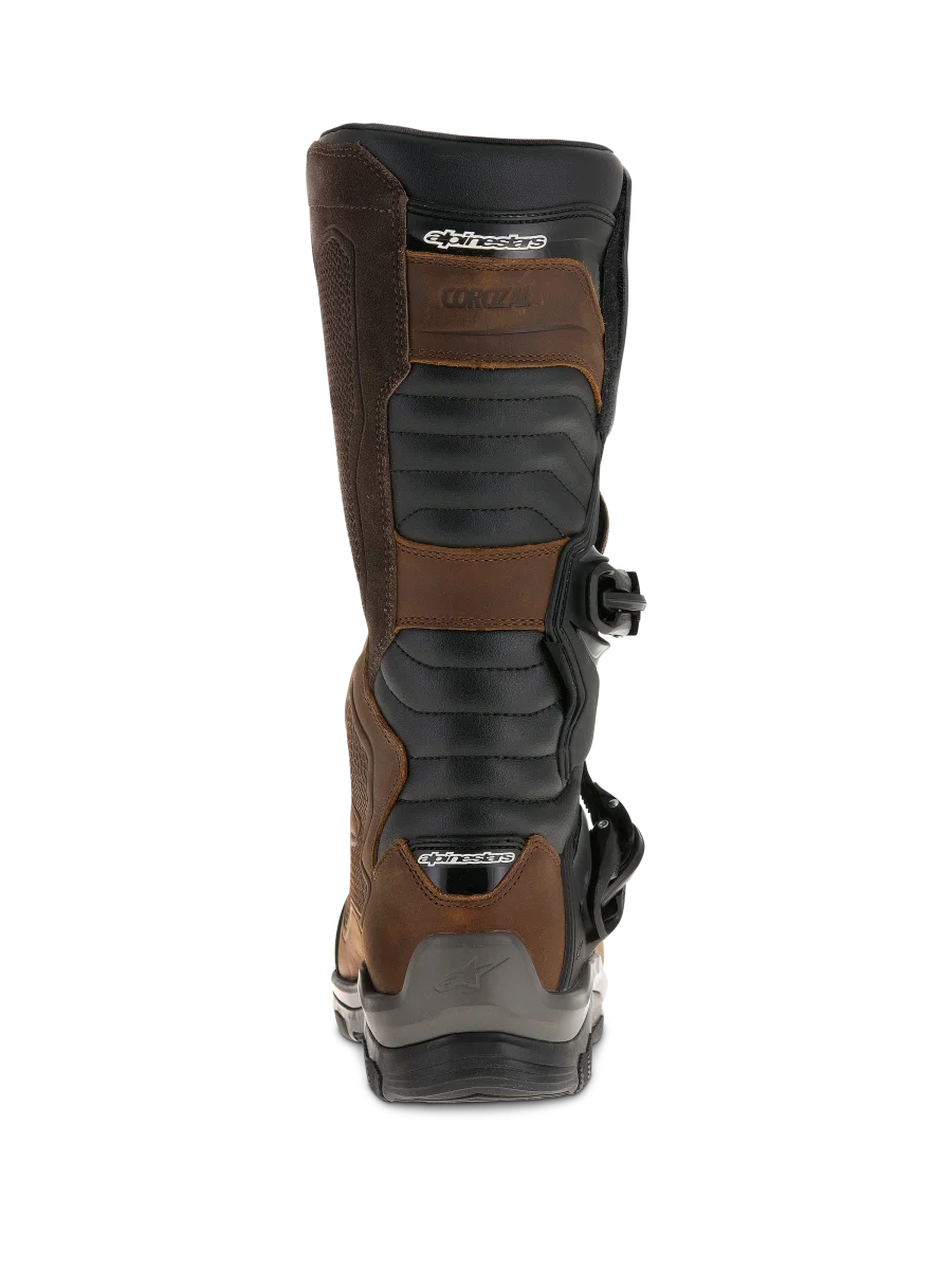 • La superficie de la parte superior de la bota está confeccionada en piel de plena flor encerada, más panel medial en piel de ante más alto para un mayor agarre. • Amplia polaina de piel recubierta en PU que ayuda a sellar fuera la entrada excesiva de agua y suciedad; la polaina trasera incluye una insercin de goma para flexibilidad y confort. • La placa de espinilla y pantorrilla en TPU ofrece apoyo y resistencia a los impactos. • Sistema Bio-mecánico lateral Òflexi-bladeÓ que proporciona un excelente movimiento frontal y trasero mientras nos ofrece soporte y proteccin al tobillo. • Almohadilla de cambio en TPU con textura técnica para un mayor agarre además de acolchado de espuma justo debajo para un mayor confort. • Amplia apertura de entrada para practicidad con solapa de cierre superior con Velcro¨ para permitir un ajuste a pantorrillas de diferentes gruesos. • Discos protectores de tobillo en TPU de doble densidad en el lado medial para proteccin. • El nuevo sistema de cierre incluye dos hebillas de polímero con un innovador sistema de cierre. Este cierre incluye un trinquete con memoria y sistema de liberacin/bloqueo rápido con un diseo auto-alineable para un cierre fácil y preciso; todas las hebillas son reemplazables. • Una suave espuma envuelve tobillos y cuello ofreciendo confort y prestaciones de absorcin de los golpes. • Capa de membrana DRYSTAR¨ entre la superficie de la bota y el forro para unas prestaciones probadas en condiciones de tiempo adverso. • La caja de dedos y el compartimento de taln reforzado están situados bajo la superficie de la bota. • Suela interna el polipropileno con caa de acero co-inyectada para un apoyo excelente y seguridad. • Compuesto de goma vulcanizada exclusivo de Alpinestars para una ptima combinacin de confort y agarre. • Plantilla anatmica reemplazable en EVA con forro de Lycra¨ en la parte superior. • Las Corozal Adventure DRYSTAR¨ Oiled Boot tienen certificacin CE a EN 13634:2010