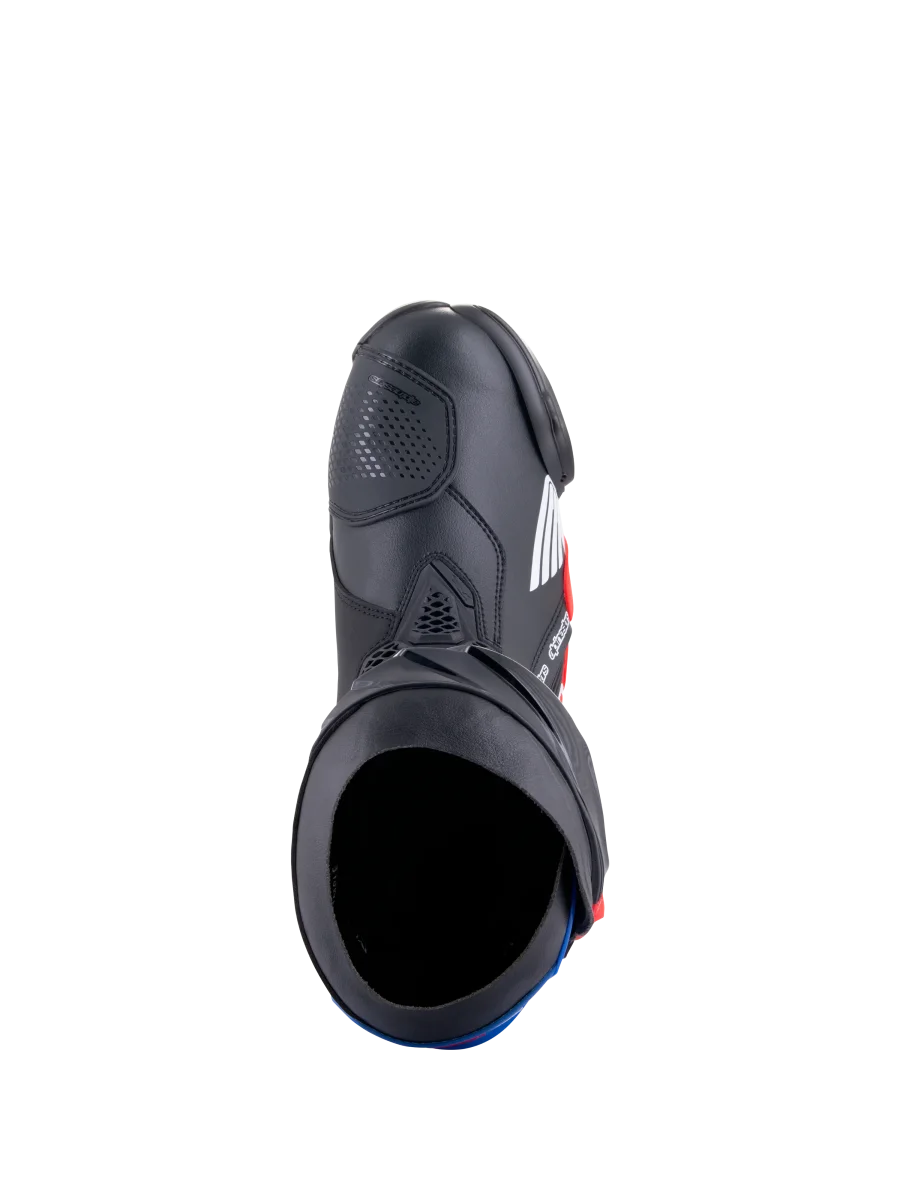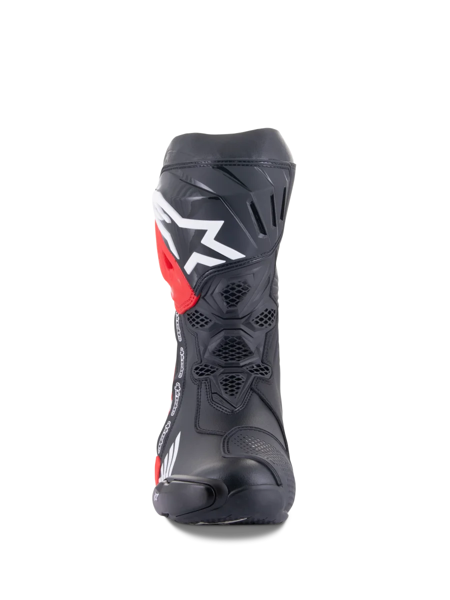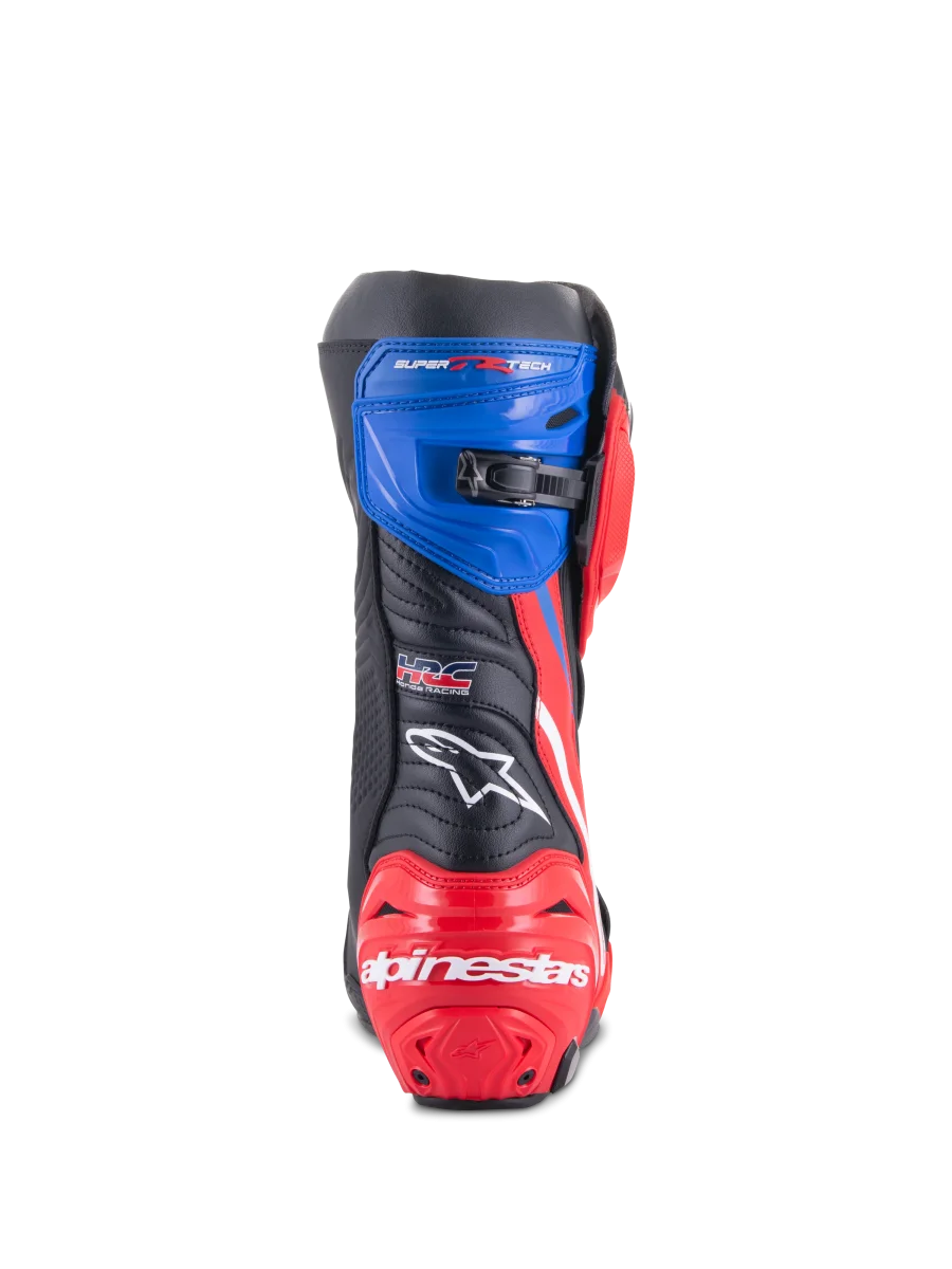 Presentadas en 2023 y diseñadas para pilotos de carretera y circuito, las Botas Honda Supertech R ofrecen control y protección de competición. Certificadas CE EN 13634:2017, combinan microfibra con placa de espinilla y deslizadores de TPU, deslizadores de puntera coinyectados TPU/aluminio y botín interior biomecánico 3D. La suela de goma ligera, el collarín microajustable y la cremallera elástica mejoran el ajuste y el agarre en estribos bajo lluvia.