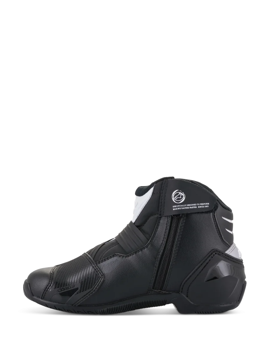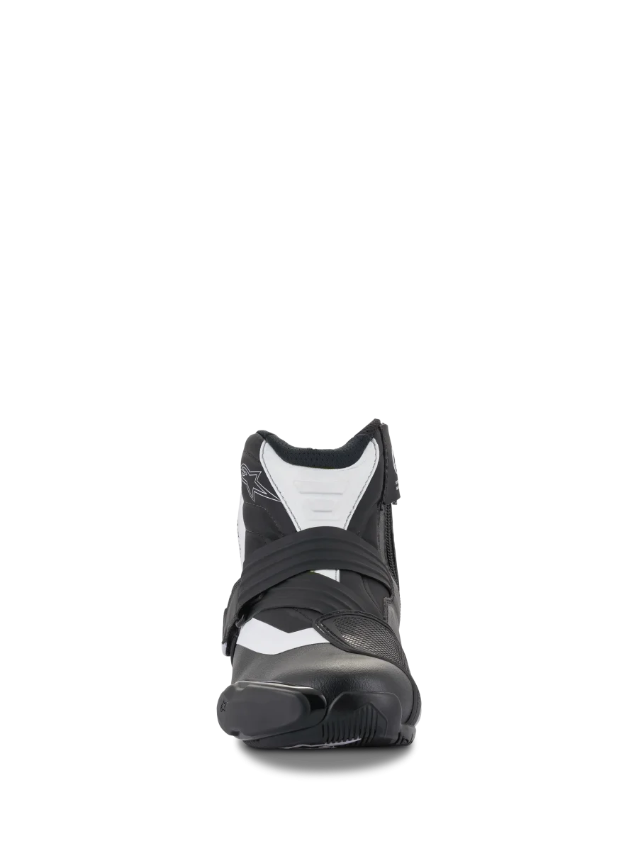 La bota para moto SMX-1 R v2 es una bota de conducción líder en su clase y de corte bajo que incorpora una serie de innovaciones técnicas para mejorar los niveles de confort, ajuste y durabilidad. Construida con una parte superior de microfibra ligera y resistente a la abrasión y reforzada con protecto.res de TPU estratégicamente colocados, la SMX-1 R V2 presenta una suela de compuesto de goma con un patrón de agarre superior para un excelente agarre tanto dentro como fuera de la moto, mientras que las zonas de flexión de acordeón proporcionan apoyo y control independientemente de su posición de conducción. • Parte superior principal construida con una microfibra avanzada para la comodidad, la durabilidad y una excelente resistencia a la abrasión. • Innovador sistema de soporte para el talón, que funciona junto con un cierre de correa para ofrecer un mejor ajuste y soporte, así como integridad estructural. • La parte trasera del contador del talón ha sido dise–ada con un inserto suave de TPR que funciona perfectamente con la zona de flexión trasera para permitir una mayor libertad de movimiento del tobillo y una mayor comodidad en los controles de la moto. • El fuelle de flexión trasera está equipado con una ventana de flexión, que también actœa como una entrada de aire para una ventilación y un flujo de aire efectivos. • Nueva almohadilla de cambio de TPU ergonómica para mejorar la durabilidad en una zona crítica. • Forma ergonómica de la bota para la aerodinámica del antepié que ofrece un amplio ajuste y comodidad del perfil del pie. • La correa de cierre evolucionada tiene un ángulo anatómico para seguir la forma natural del empeine de la motorista. • El sistema de cierre frontal de Velcro¨ ofrece un ajuste rápido y seguro en la zona del empeine, a la vez que permite excelentes niveles de flexión. • La correa se ajusta con un tirador TPR para facilitar su uso. • Los alambres de fibra aramídica aseguran que el nuevo sistema de cierre de la correa sea duradero, delgado y ligero. • La exclusiva suela de goma compuesta Alpinestars con un patrón de agarre para mejorar la sensación y el agarre, la dispersión del agua y la durabi.lidad. • La suela tiene integrado el TPF (Marco de Protección Transversal) de Alpinestars para proteger contra posibles cargas transversales. • Las zonas de flexión del empeine y del acordeón de Aquiles están construidas con microfibra ligera para optimizar los niveles de durabilidad, confort y maniobrabilidad dentro y fuera de la moto. • Ranuras de flexión termosoldadas para controlar la flexión y la flexibilidad del zapato; empeine, medio y espalda. • El cierre de cremallera invertido asegura una cómoda entrada y salida. • Protector de tobillo de doble densidad a ambos lados, en capas debajo de la parte superior, que ofrece un rendimiento de protección y resistencia a la abrasión en la zona clave. • El deslizador del antepié de TPU biinyectado integrado y reemplazable presenta un nuevo concepto de fijación con tornillos fáciles para una susti.tución más rápida y sencilla. • Protector de talón externo de TPU de alto módulo, tobillo lateral y almohadilla de cambio para mejorar la protección contra golpes y la durabilidad. • Protección interna de la puntera colocada debajo de la parte superior para mayor durabilidad, mejor sensación y rendimiento. • Plantilla anatómica extraíble que incluye espuma EVA y Lycra¨ para mayor comodidad y soporte. • Forro interno de malla para una mayor comodidad de refrigeración y evacuación de la humedad. • De acuerdo con la legislación europea, la marca CE es un requisito de conformidad para la comercialización de este producto. • Se aplican las siguientes normas: ¥ CE EN13634:2017.