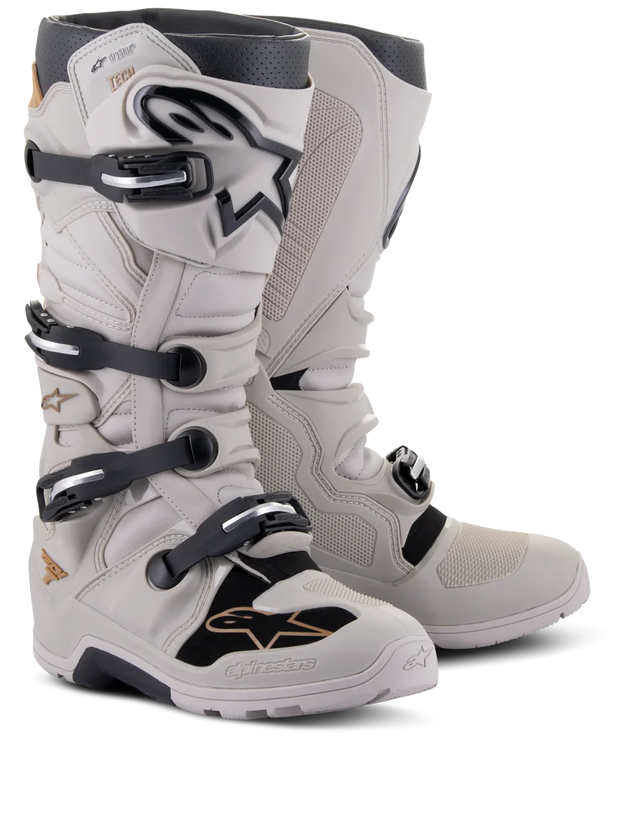 • Certificacin CE a EN 13634:2017. • Membrana Drystar® resistente al agua para rendimiento climático y transpiracin. • Parte superior construida de microfibra ligera innovadora que es flexible y resistente a la abrasin. • Material superior reforzado con PU para altos niveles de resistencia al gua y durabilidad para un rendimiento mejorado y menor peso. • Confeccin de placa de espinilla de TPU revolucionaria e innovadora para mayor rango de ajuste con cierre de velcro reforzada para un cierra cmodo y muy cmodo. • Suela específicamente diseada que proporciona a los motoristas Enduro durabilidad, agarre y sensacin superiores y un alto nivel de rigidez estructural. • Apertura de entrada amplia para comodidad con solapa de cierre TPR superior de velcro para permitir un amplio rango de ajuste al gemelo y soporte. • Zona medial construida de panel de TPU de una pieza con esculpido de panal para contacto de agarre máximo con la moto y resistencia al calor y la abrasin mejorada. • La flexin superior trasera de la bota está sujeta alrededor del gemelo mediante un sistema de hoja deslizante de TPU que disipa la friccin. • Sistema de bucle ergonmico que ofrece un cierre seguro y altamente personalizado. • Proteccin innovadora lateral de tobillo de TPU que proporciona un vínculo biomecánico entre el lateral medio y el lateral inferior de la bota. Zonas de flexin en acorden en el empeine y taln de Aquiles para control y apoyo superiores. • Armazn inferior de TPU reforzado con un vástago de metal que incluye refuerzo en los dedos del pie para resistencia contra el impacto y la abrasin. • Las polainas de microfibra grandes ayudan a proteger contra la entrada excesiva de agua y polvo. • Nuevo sistema de cierre de bucles de polímero con un marco de aluminio con cierres innovadores auto-alineables de liberacin rápida para un ajuste seguro y personalidad. • Todos los bucles pueden sustituirse fácilmente. • Membrana Drystar® incorporada sutilmente en el chasis para rendimiento al 100% contra la penetracin de humedad. • Los tobillos y el cuello están rodeados de poliespuma suave para ofrecer comodidad y rendimiento de absorcin de choques. • Suela anatmica extraíble.
