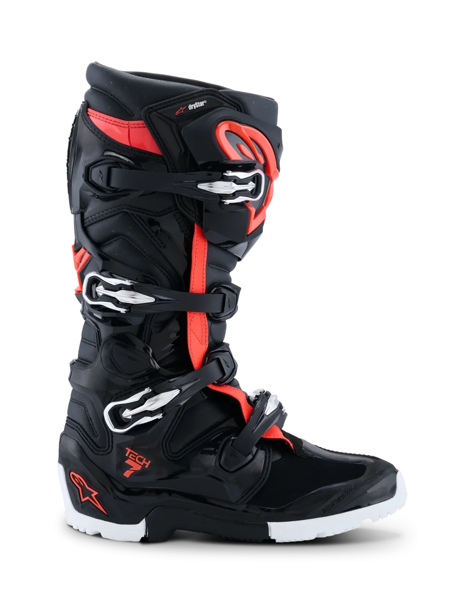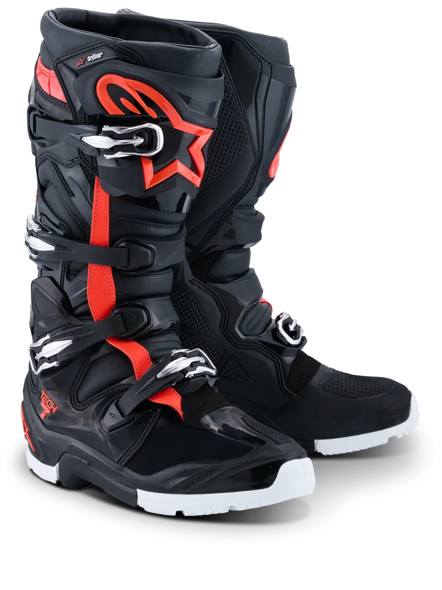 Las botas Tech 7 Enduro Drystar® 2026 están diseñadas para pilotos off‑road y ofrecen rendimiento impermeable en condiciones exigentes. Certificadas CE EN 13634:2017, incorporan membrana Drystar® transpirable, pivote biomecánico de tobillo y suela de doble densidad específica de enduro, con refuerzos de espinillera y carcasa inferior en TPU. Beneficios: hebillas autoalineables de liberación rápida, mejor tacto mediante paneles de agarre mediales y comodidad con acolchado suave y plantilla extraíble.