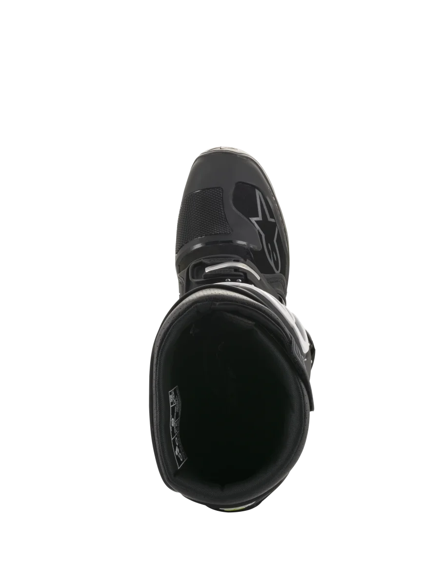 • Certificacin CE a EN 13634:2017. • Membrana Drystar® resistente al agua para rendimiento climático y transpiracin. • Parte superior construida de microfibra ligera innovadora que es flexible y resistente a la abrasin. • Material superior reforzado con PU para altos niveles de resistencia al gua y durabilidad para un rendimiento mejorado y menor peso. • Confeccin de placa de espinilla de TPU revolucionaria e innovadora para mayor rango de ajuste con cierre de velcro reforzada para un cierra cmodo y muy cmodo. • Suela específicamente diseada que proporciona a los motoristas Enduro durabilidad, agarre y sensacin superiores y un alto nivel de rigidez estructural. • Apertura de entrada amplia para comodidad con solapa de cierre TPR superior de velcro para permitir un amplio rango de ajuste al gemelo y soporte. • Zona medial construida de panel de TPU de una pieza con esculpido de panal para contacto de agarre máximo con la moto y resistencia al calor y la abrasin mejorada. • La flexin superior trasera de la bota está sujeta alrededor del gemelo mediante un sistema de hoja deslizante de TPU que disipa la friccin. • Sistema de bucle ergonmico que ofrece un cierre seguro y altamente personalizado. • Proteccin innovadora lateral de tobillo de TPU que proporciona un vínculo biomecánico entre el lateral medio y el lateral inferior de la bota. Zonas de flexin en acorden en el empeine y taln de Aquiles para control y apoyo superiores. • Armazn inferior de TPU reforzado con un vástago de metal que incluye refuerzo en los dedos del pie para resistencia contra el impacto y la abrasin. • Las polainas de microfibra grandes ayudan a proteger contra la entrada excesiva de agua y polvo. • Nuevo sistema de cierre de bucles de polímero con un marco de aluminio con cierres innovadores auto-alineables de liberacin rápida para un ajuste seguro y personalidad. • Todos los bucles pueden sustituirse fácilmente. • Membrana Drystar® incorporada sutilmente en el chasis para rendimiento al 100% contra la penetracin de humedad. • Los tobillos y el cuello están rodeados de poliespuma suave para ofrecer comodidad y rendimiento de absorcin de choques. • Suela anatmica extraíble.