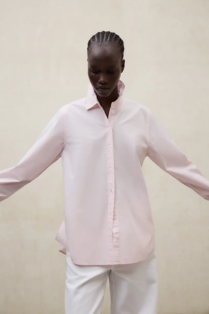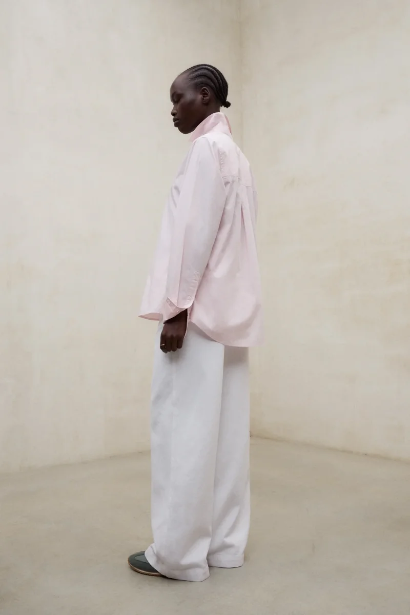 La Camisa Alfreda está fabricada con un tejido principal de 70% Algodón orgánico. Cierre delantero con botones y pliegue central en la espalda.