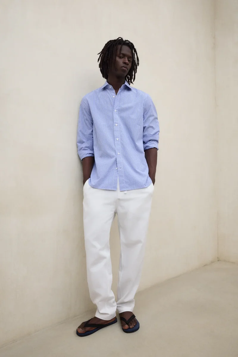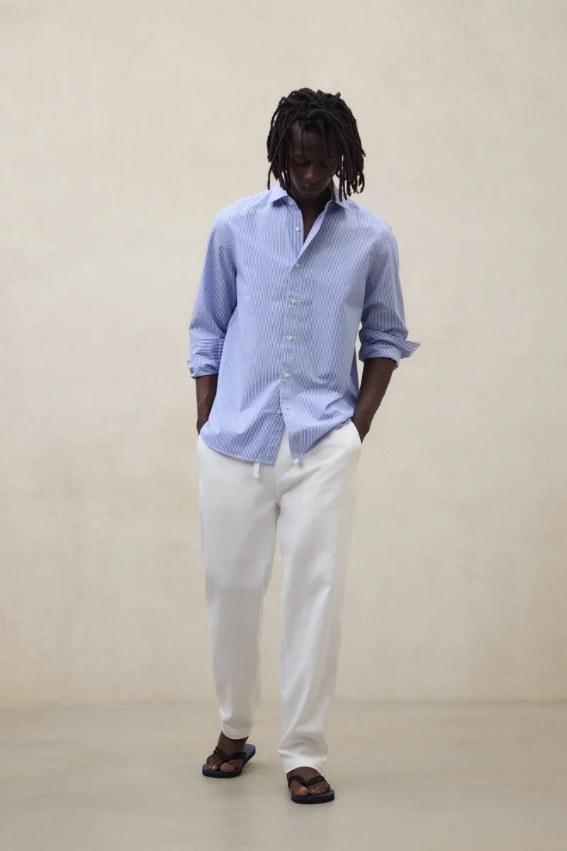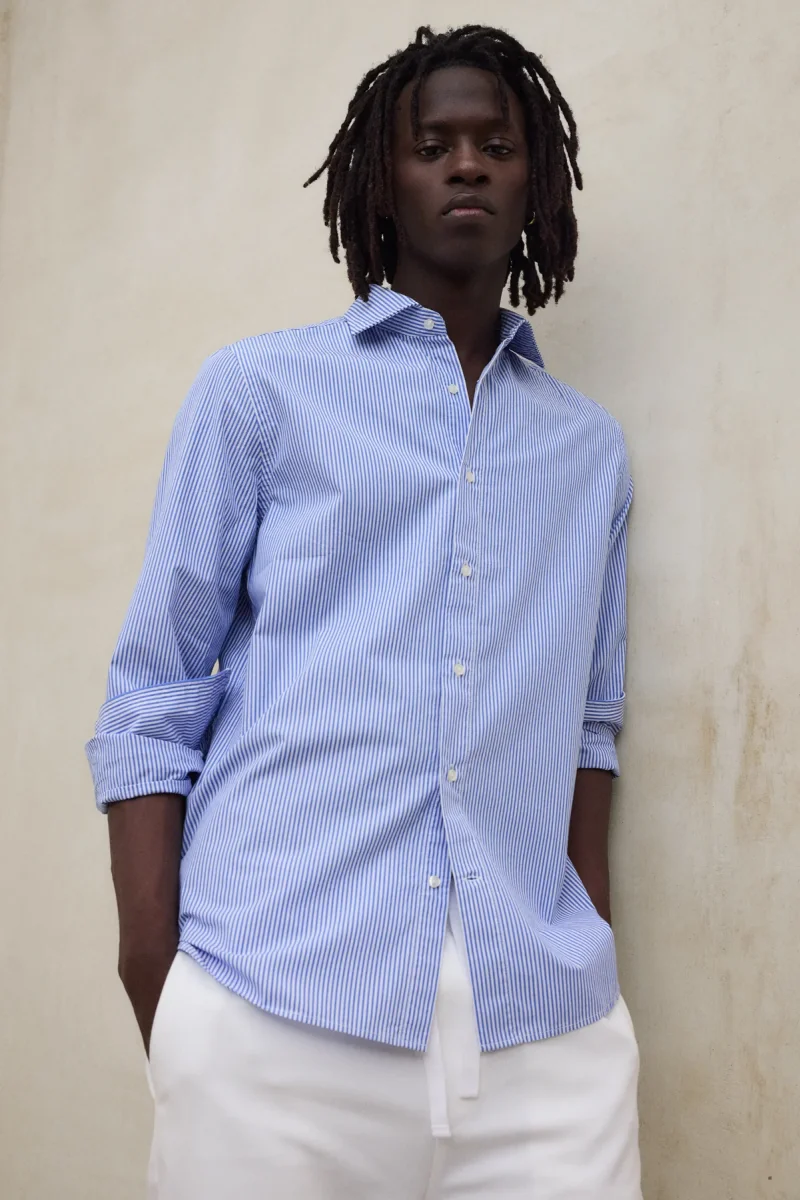 La Camisa Alfredo está fabricada con un tejido principal de 70% Algodón orgánico. Fit regular. Cuello italiano. Tapeta frontal con botones y aberturas en las mangas con cierre de botón.