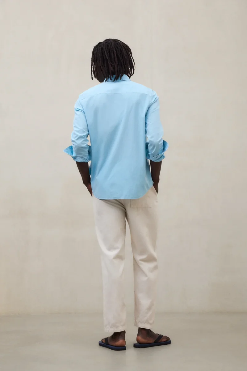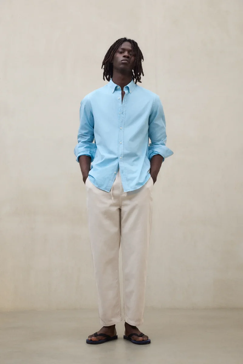 La Camisa Antejo de Popelín está fabricada con un tejido principal de 100% Algodón regenerativo. Ofrece una suavidad superior y genera un impacto positivo gracias al proceso de cultivo. Esta colección restaura 143 hectáreas de tierra recuperando la salud del suelo, mejorando la absorción del agua, favoreciendo el secuestro de CO2 en el suelo, restaurando la biodiversidad y mejorando la vida de los agricultores locales. Cada pieza está teñida con pigmentos naturales consiguiendo un colorido único. Fit regular. Tapeta frontal con botones. Cuello con botones. Teñido con pigmento natural.