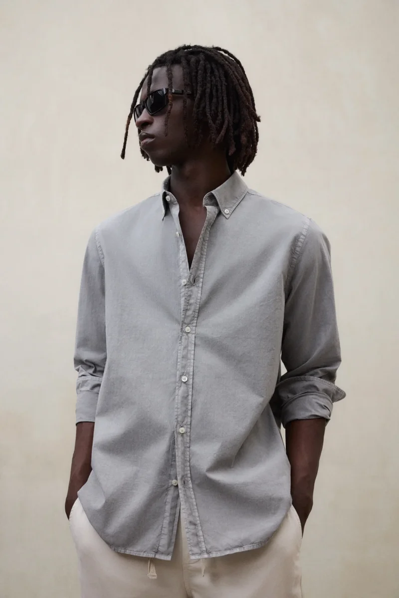 CAMISA ANTEJO DE POPELÍN GRIS OSCURO