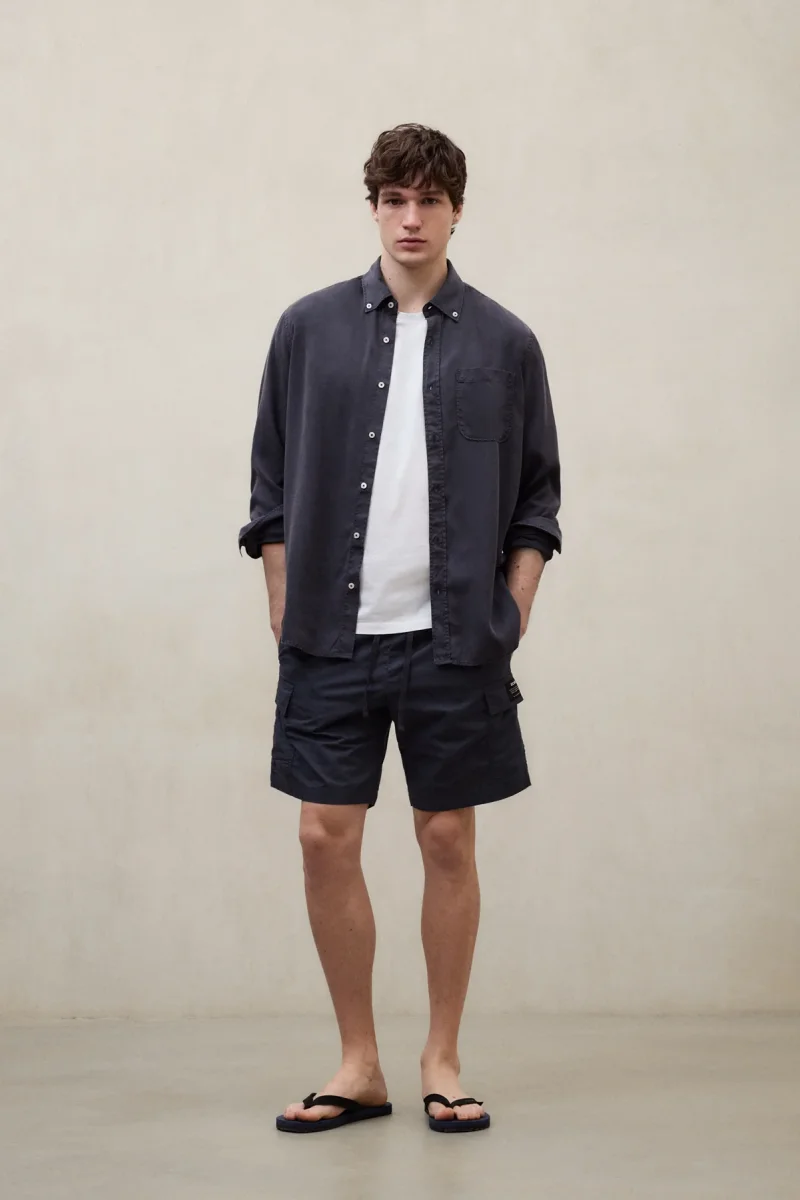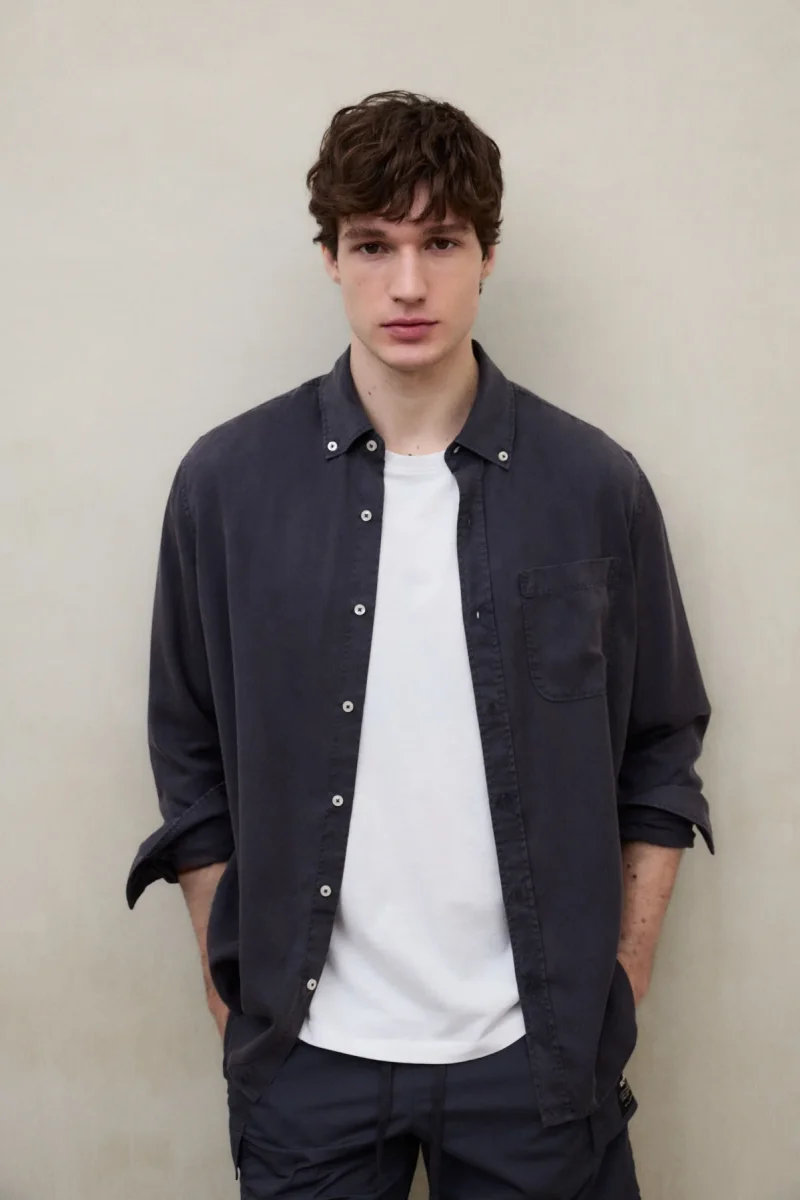 La Camisa Antejo está fabricada con un tejido principal de 100% TENCEL™ LYOCELL. Fit regular. Tapeta frontal con botones. Cuello con botones. Teñido en prenda.