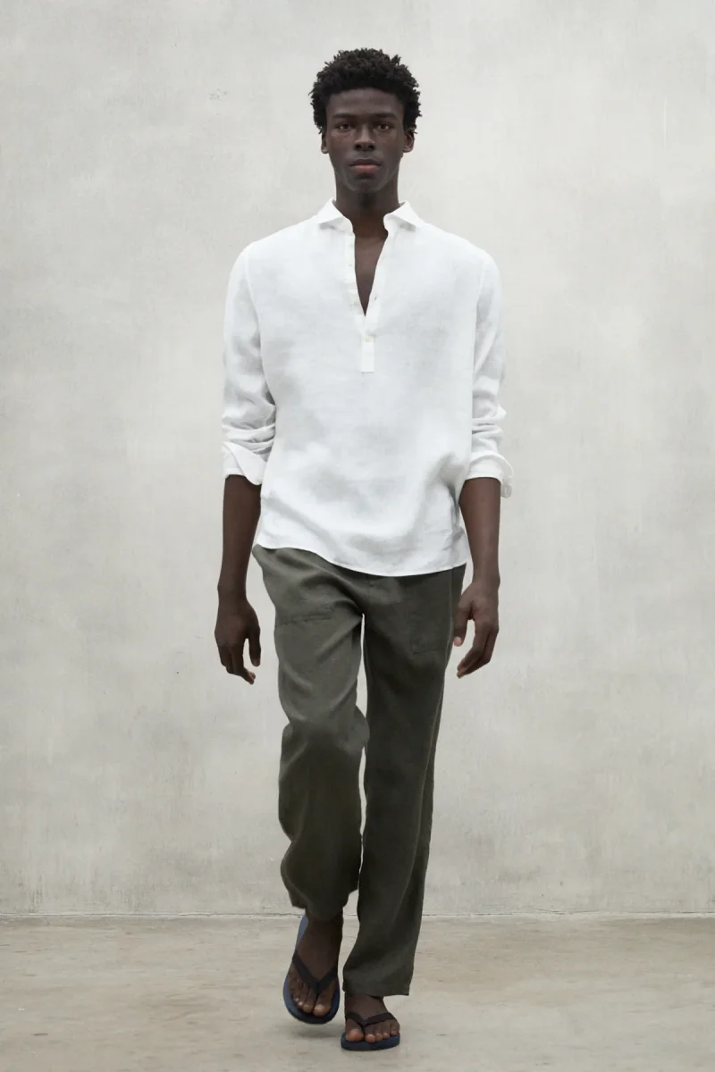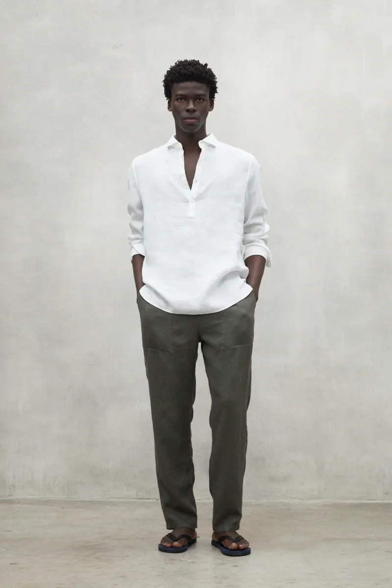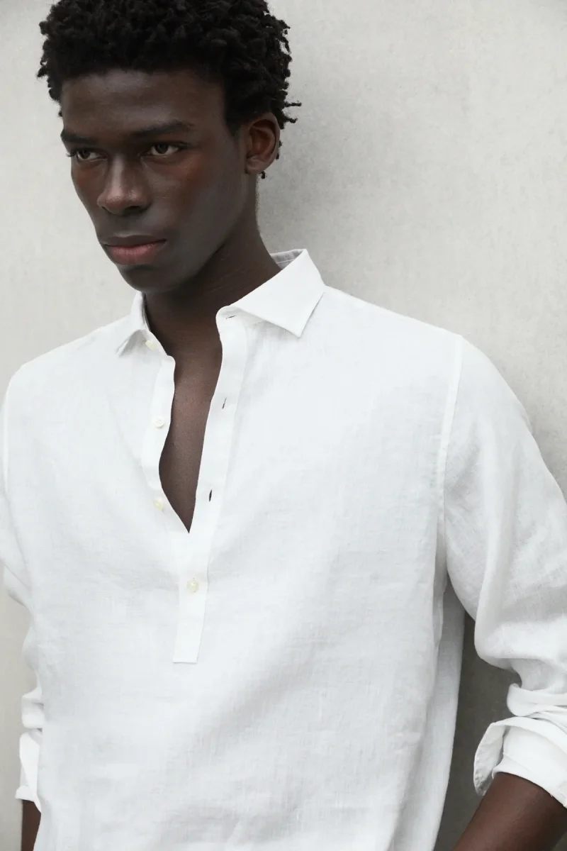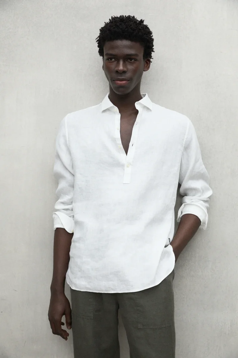 La camisa Polino, confeccionada con un material principal de 100% lino. El mínimo impacto medioambiental del lino lo convierte en una opción destacada. El lino requiere mucha menos agua y pesticidas que otros cultivos y, además, es biodegradable. Ofrece una combinación de frescura y estilo. Es ideal para lograr un look elegante y relajado en cualquier ocasión.