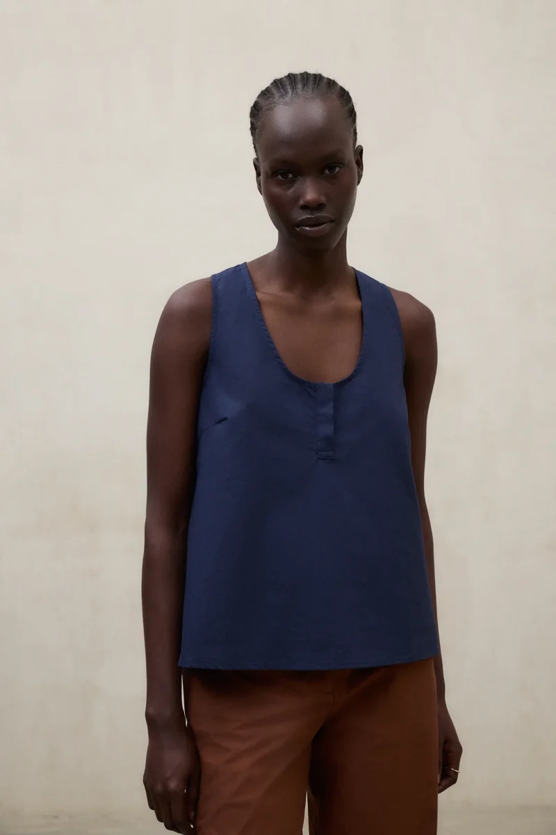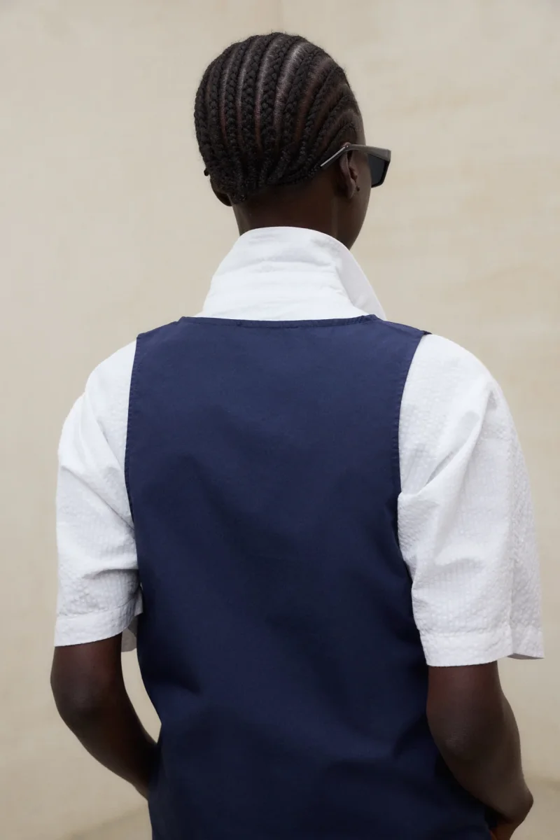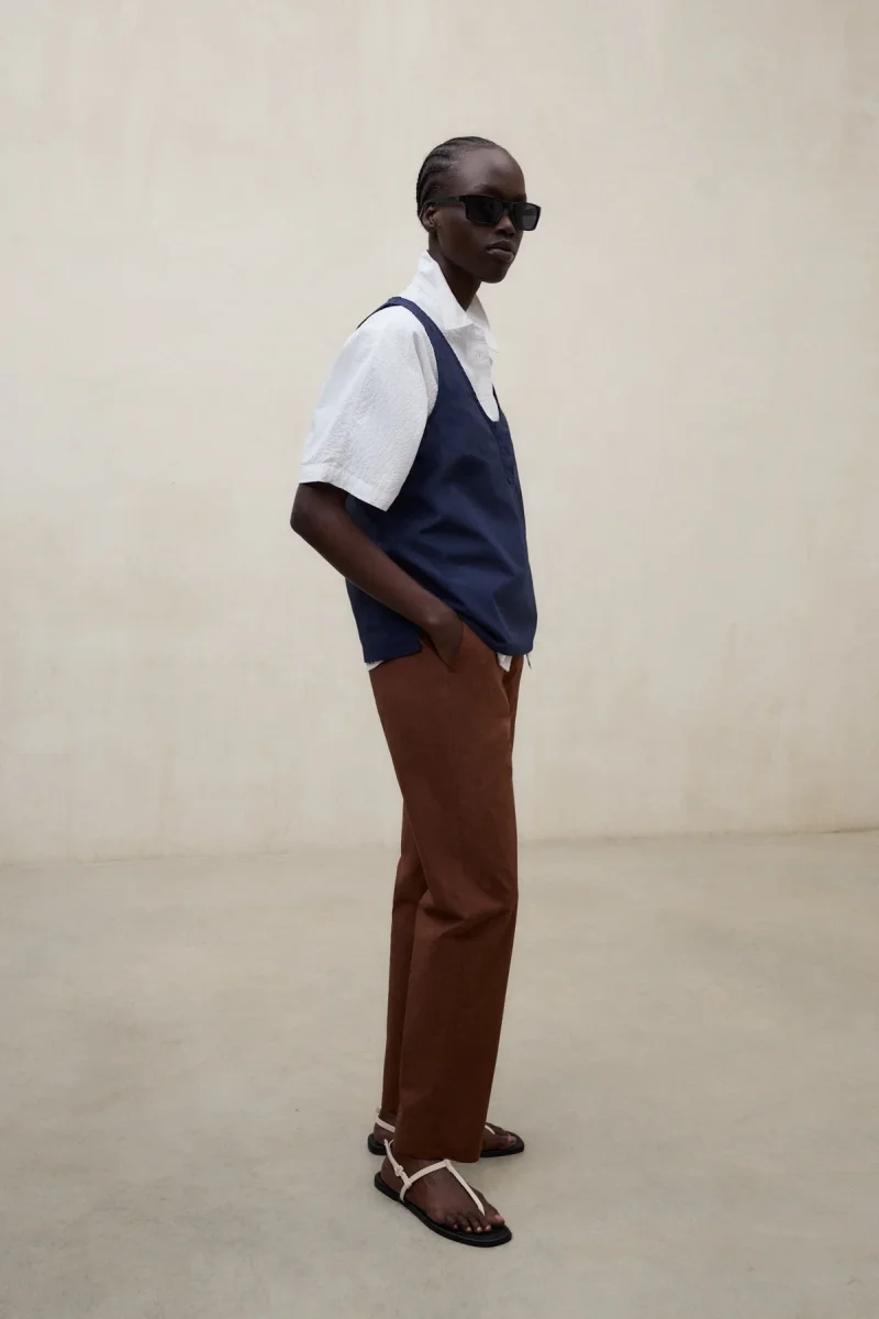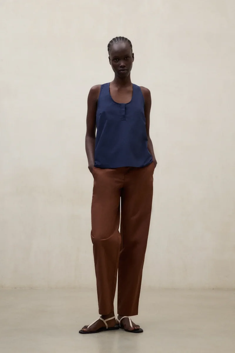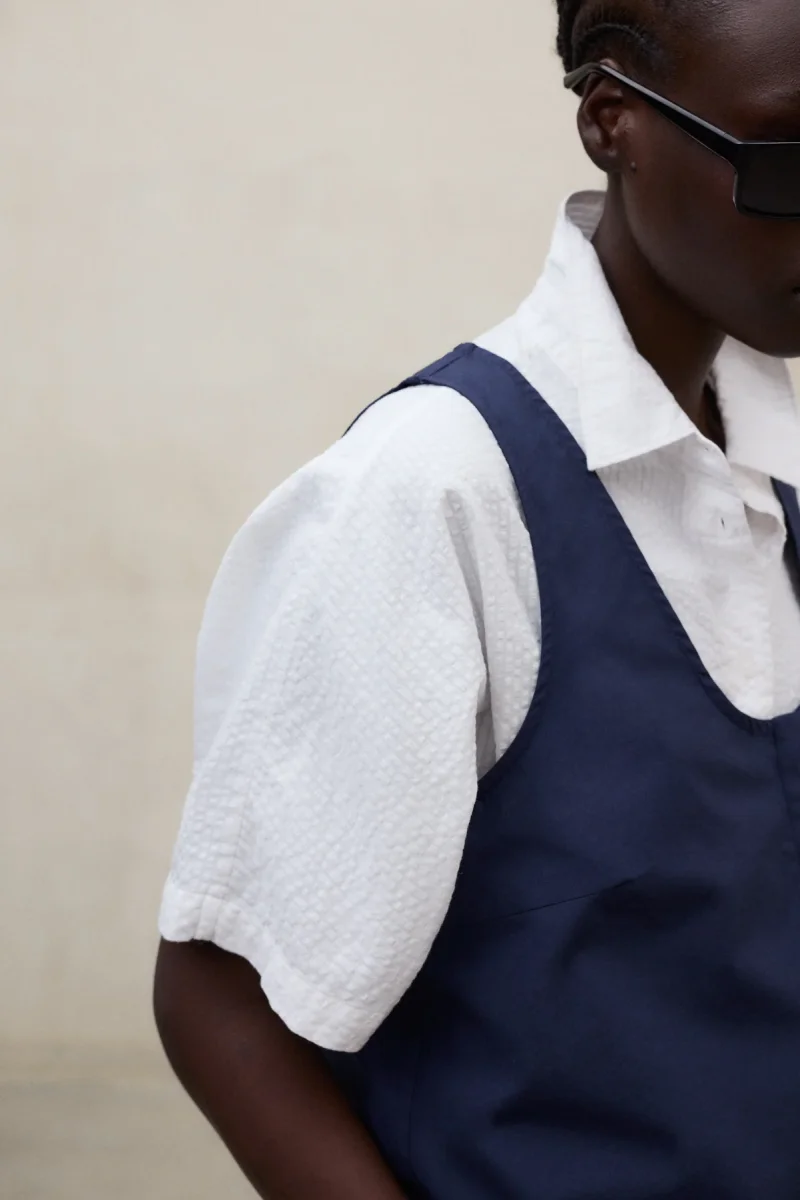 La Camisa Rita está fabricada con un tejido principal de 70% Algodón orgánico. Fit regular. Escote U. Tapeta frontal con cierre de botones ocultos.