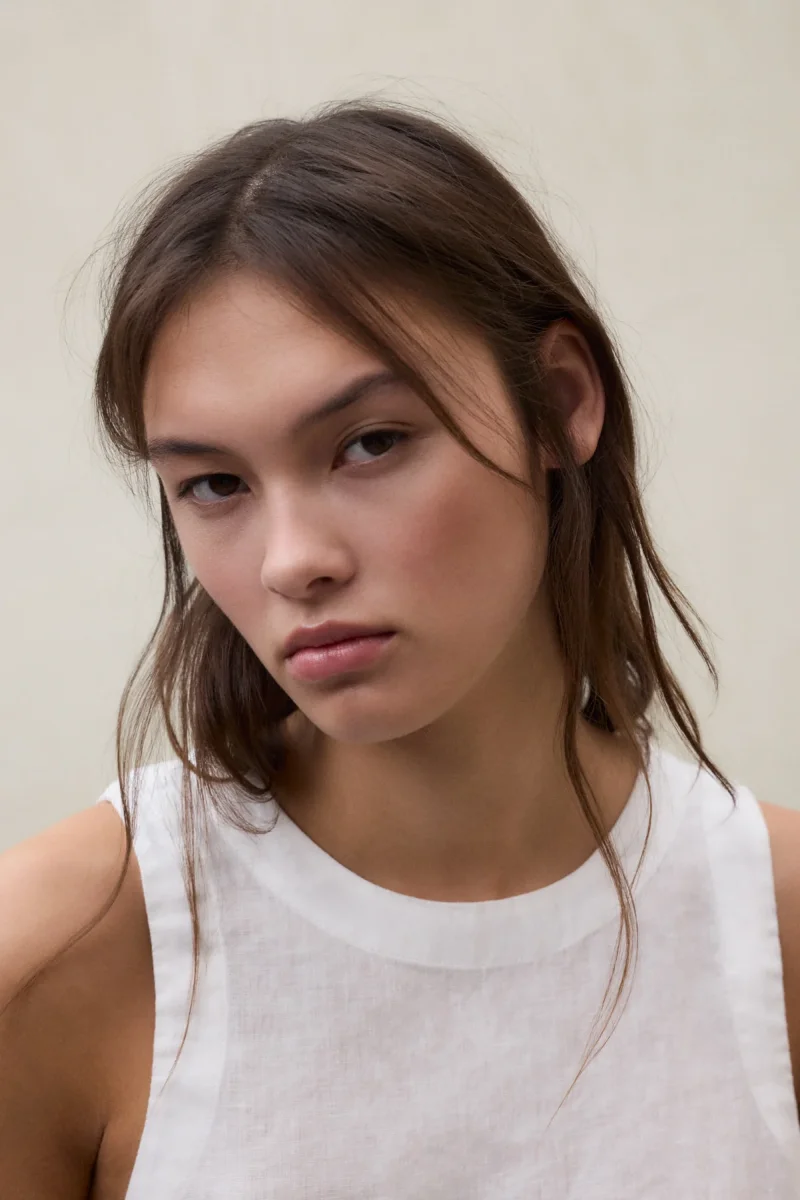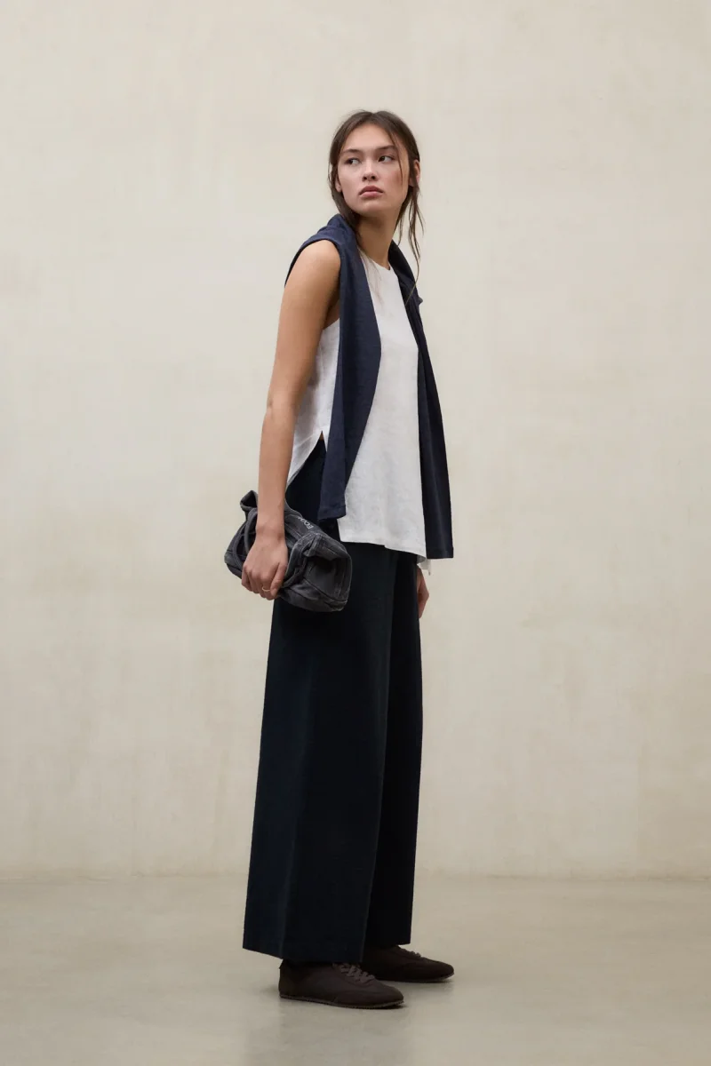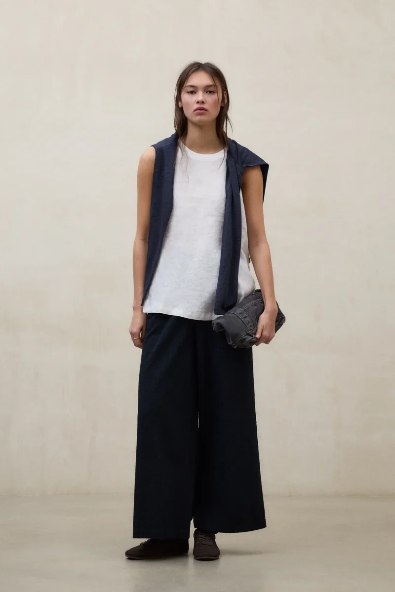 La Camisa Sia está fabricada con un tejido principal de 80% Lino. Fit regular. Cuello redondo, sin mangas, aberturas laterales profundas y en el cuello trasero.