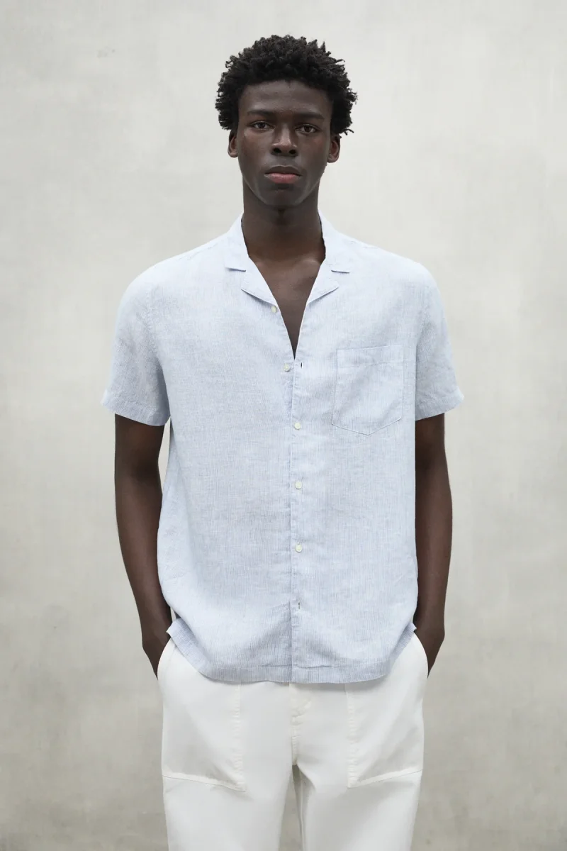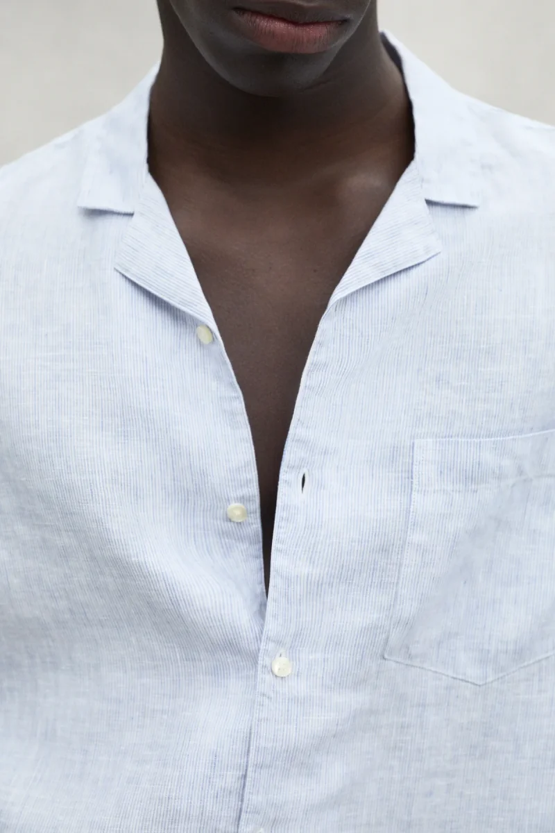 La camisa Sutar, hecha con un material principal de 100% lino. El lino requiere mucha menos agua y pesticidas que otros cultivos y, además, es biodegradable. Es perfecta para los días cálidos gracias a su frescura y ligereza. Su diseño sofisticado la hacen una elección excelente para un look casual y elegante.