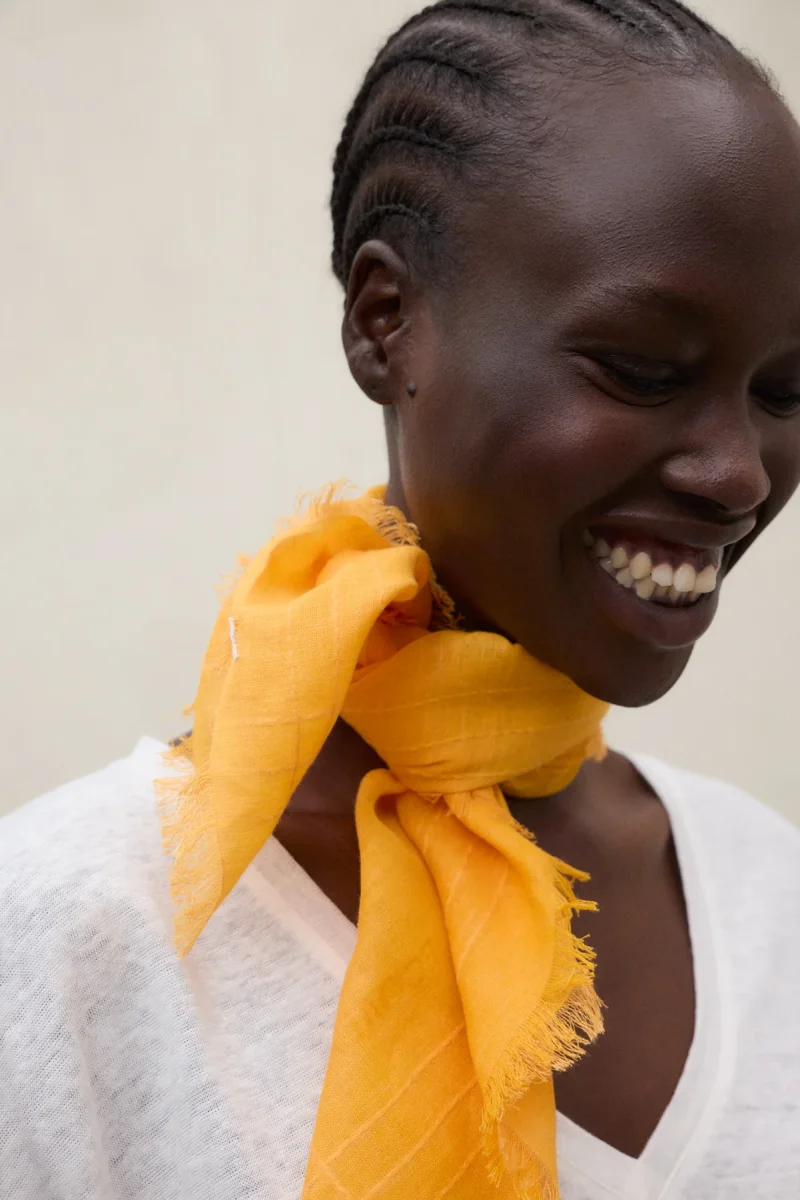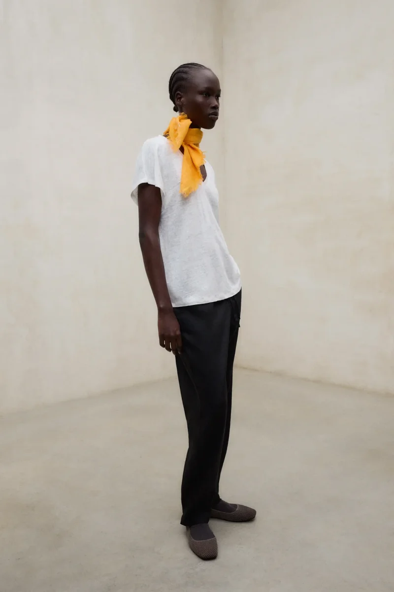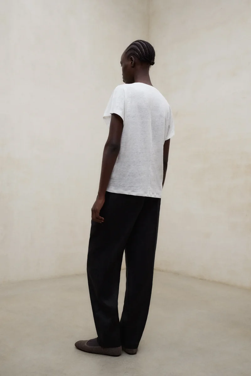 La Camiseta Arendal está fabricada con un tejido principal de 100% Lino. Fit relajado. Escote en V y manga corta.