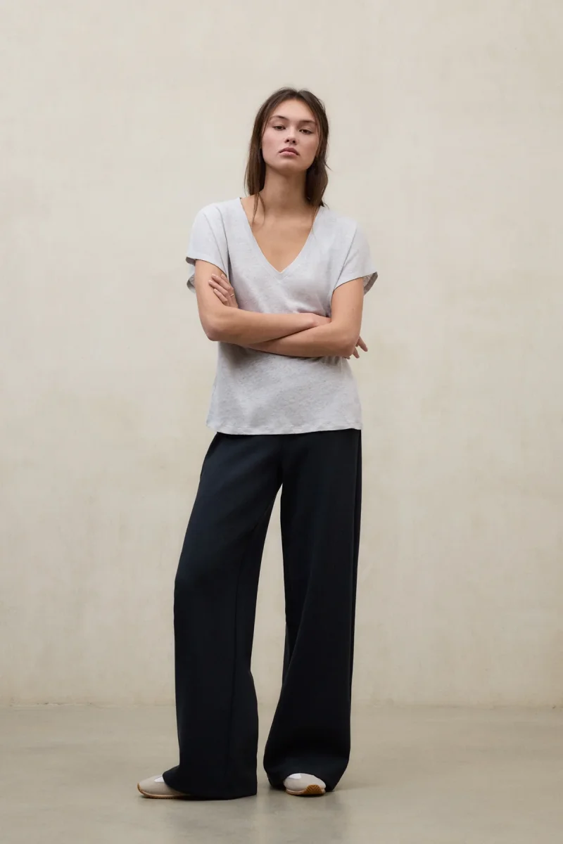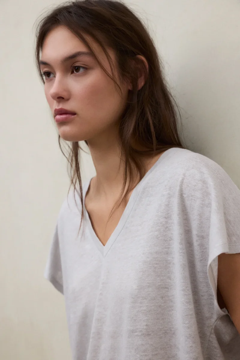 La Camiseta Arendal está fabricada con un tejido principal de 100% Lino. Fit relajado. Escote en V y manga corta.
