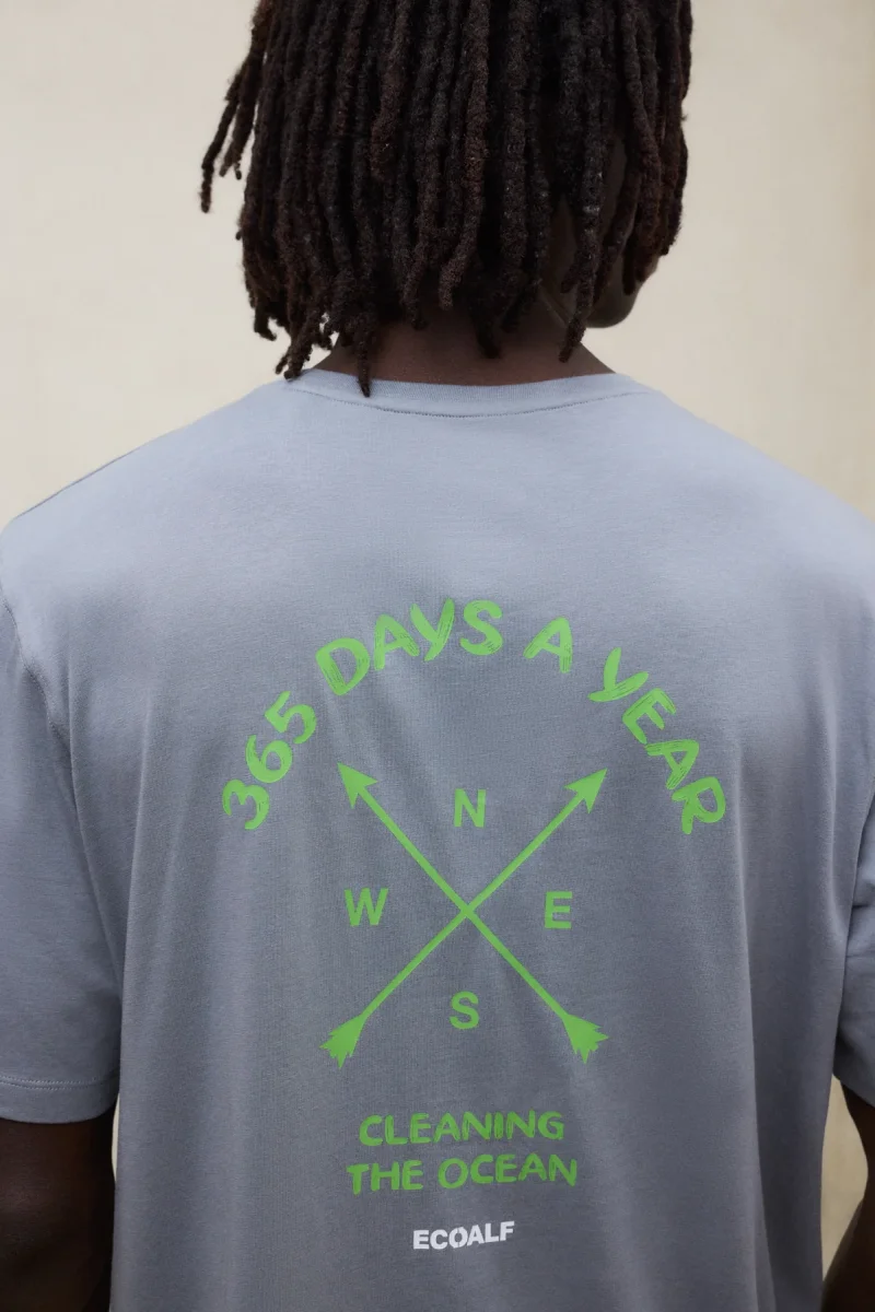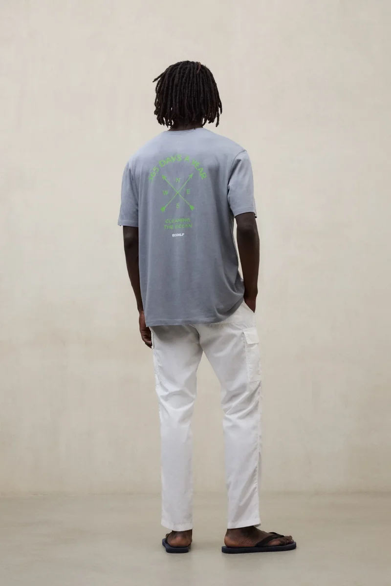 La Camiseta Clin está fabricada con un tejido principal de 52% Algodón orgánico. Fit relajado. Estampado en la espalda. Cuello redondo de canalé.
