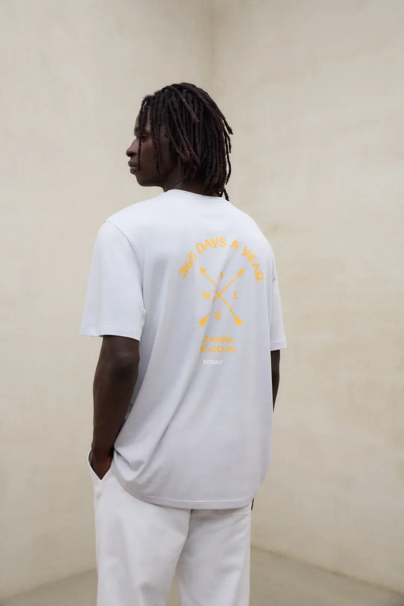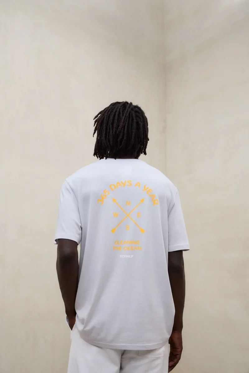 La Camiseta Clin está fabricada con un tejido principal de 52% Algodón orgánico. Fit relajado. Estampado en la espalda. Cuello redondo de canalé.