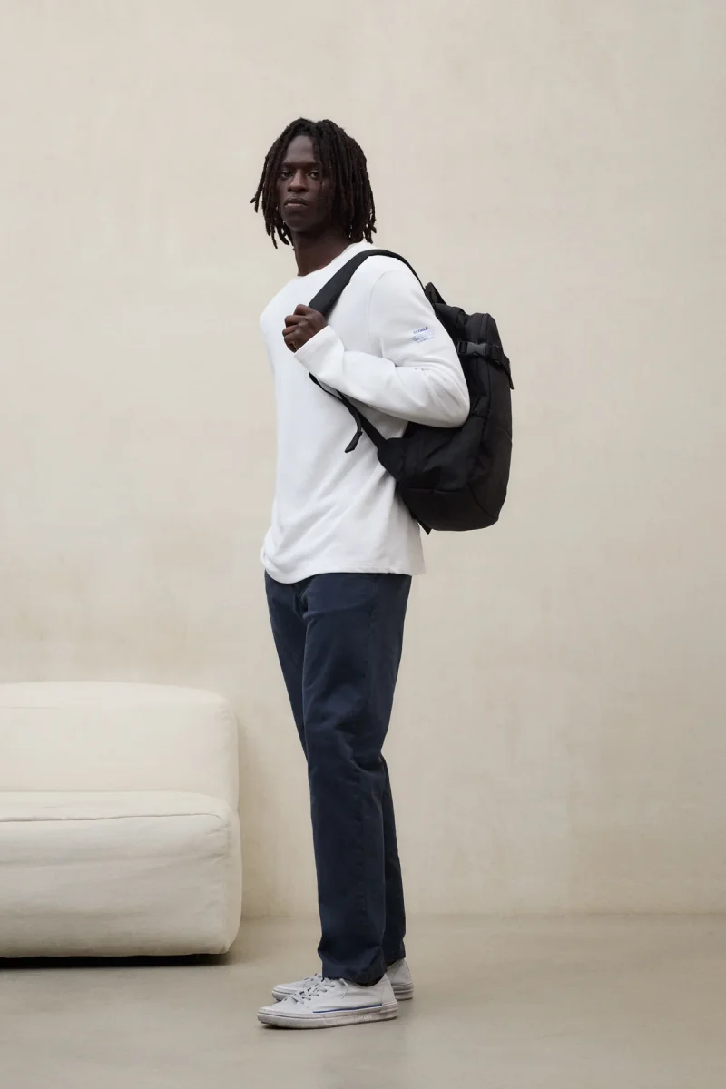 La Camiseta de manga larga Sustano está fabricada con un tejido principal de 100% Algodón reciclado. Fit regular. Cuenta con canalé en el cuello y estampado en la espalda con efecto desgastado.