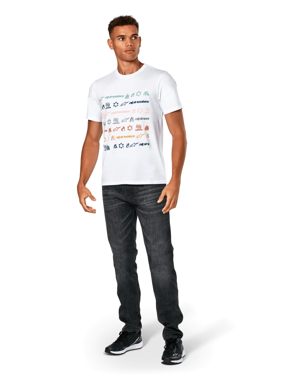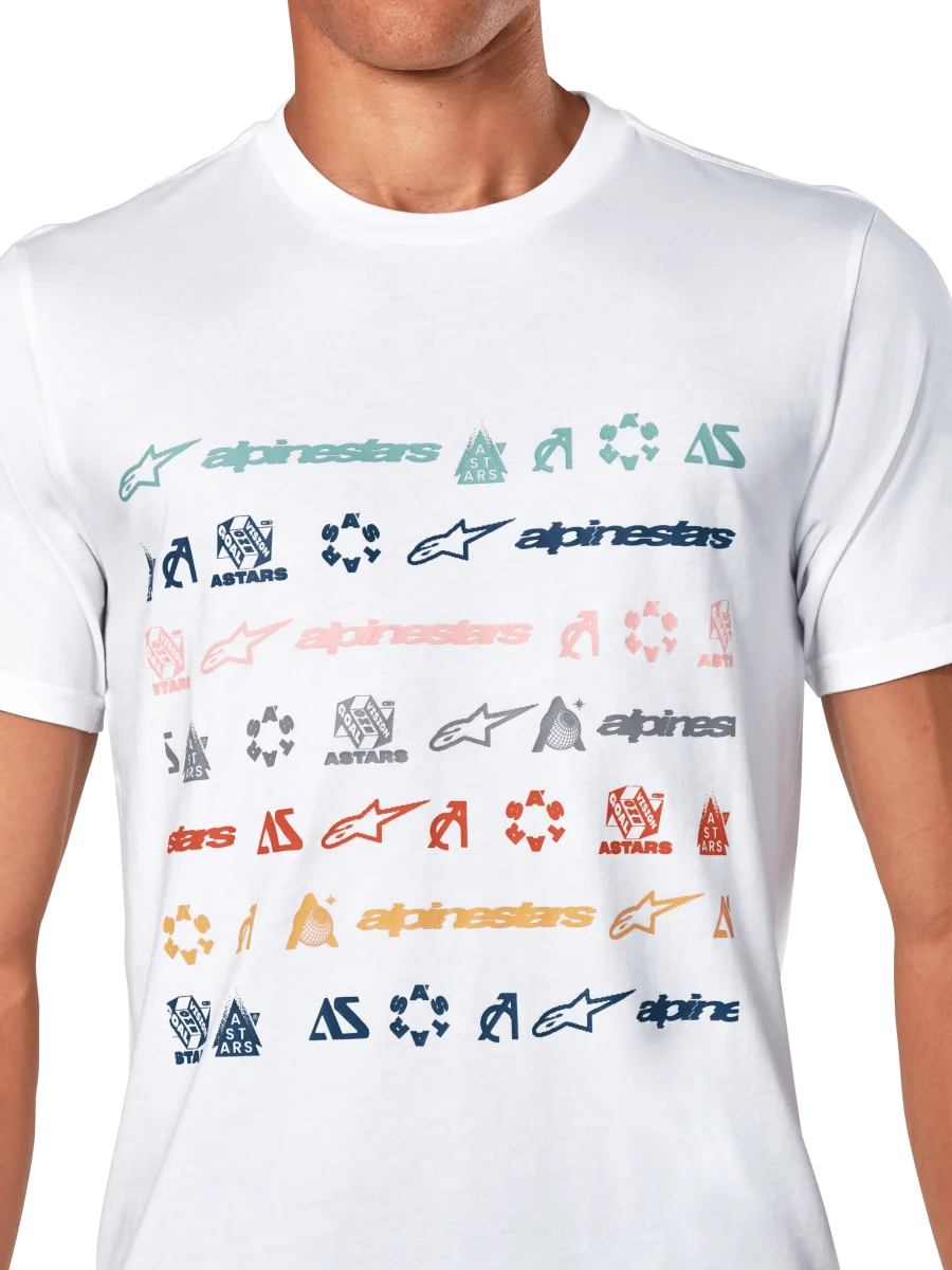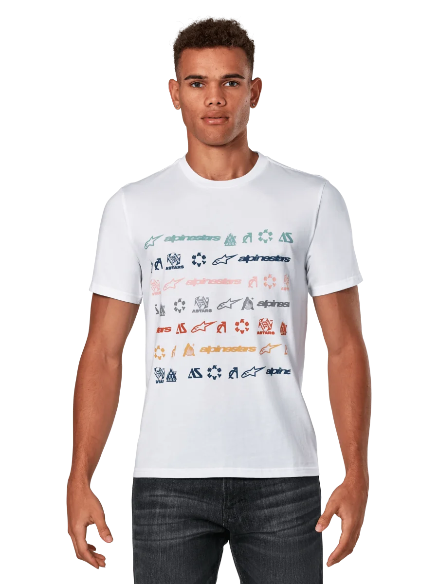 • Gráfico de rayas con múltiples logotipos en la parte delantera. Impresión suave al tacto