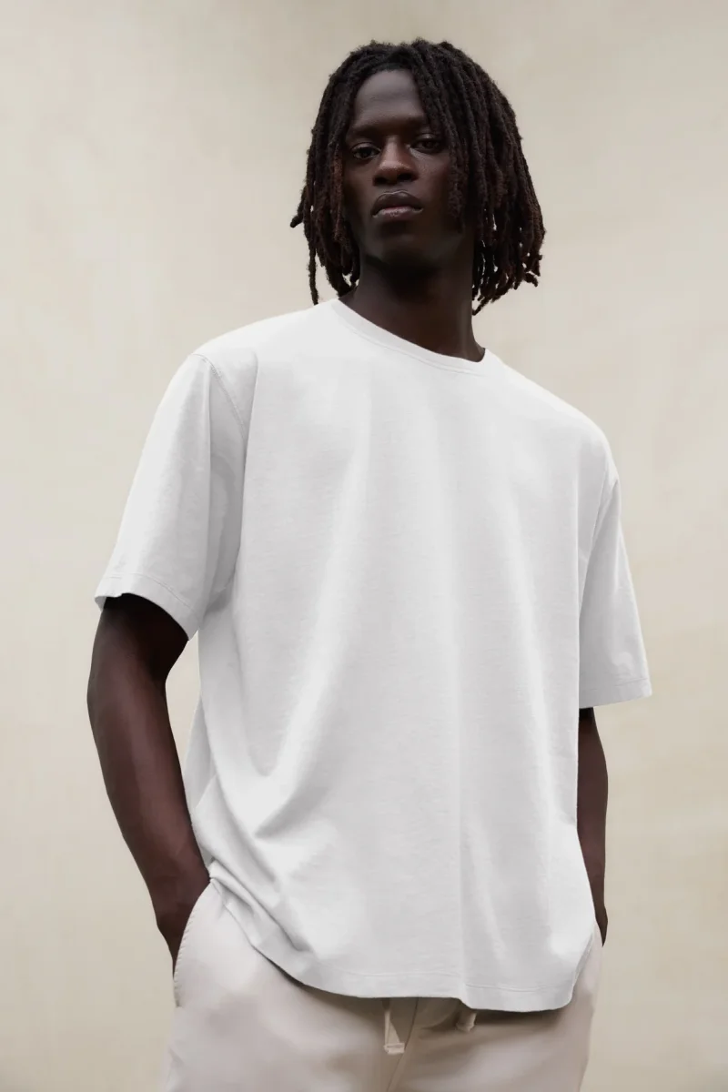 La Camiseta Mund está fabricada con un tejido principal de 50% Algodón orgánico. Fit oversize. Cuenta con cuello redondo de canalé. Serigrafía con efecto desgastado en la espalda.