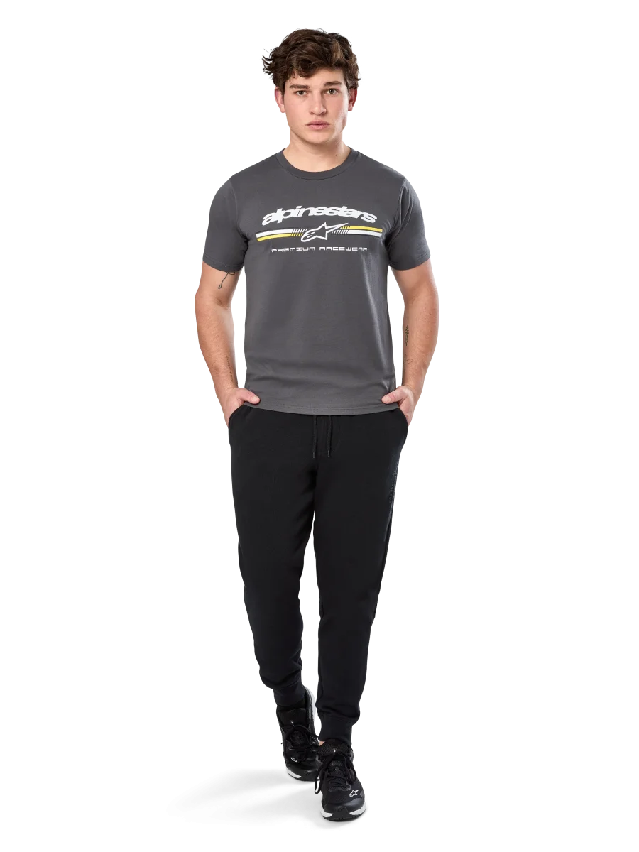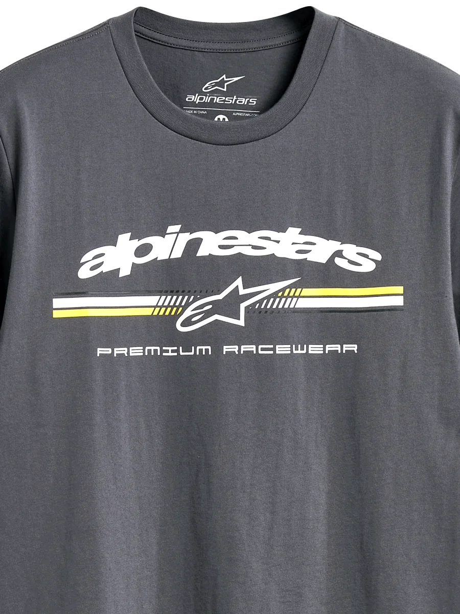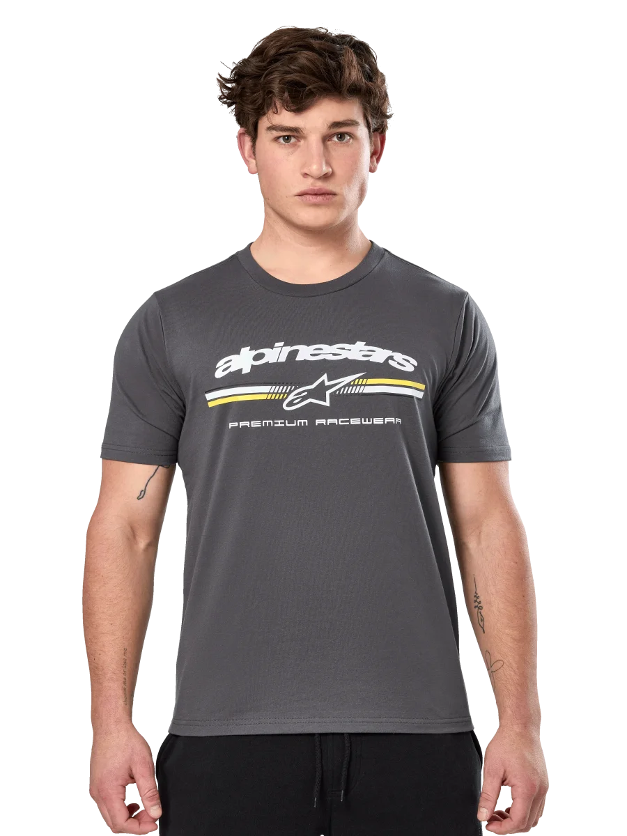 • CAMISETA DE MANGA CORTA CSF IMPRESA • Logo de rayas tricolores estilo paddock frontal. Impresión de tacto suave