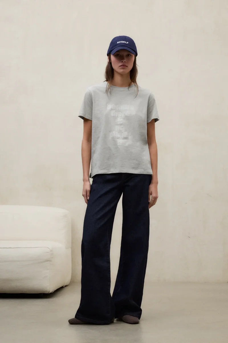 La Camiseta Ronda está fabricada con un tejido principal de 50% Algodón orgánico. Fit regular. Estampado de frase en la parte frontal y cuello redondo.