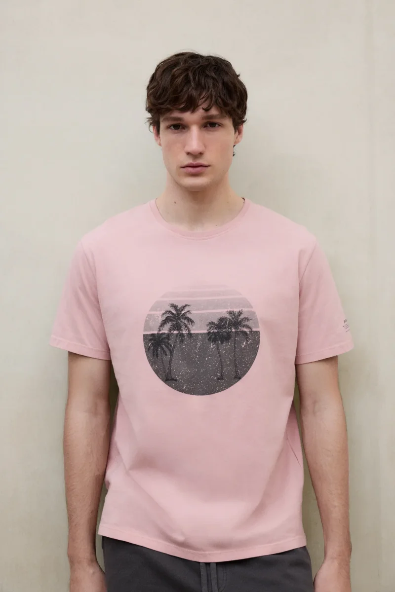 La Camiseta Ros está fabricada con un tejido principal de 50% Algodón orgánico. Fit regular. Cuenta con cuello redondo de canalé. Estampado con efecto desgastado en el frente.