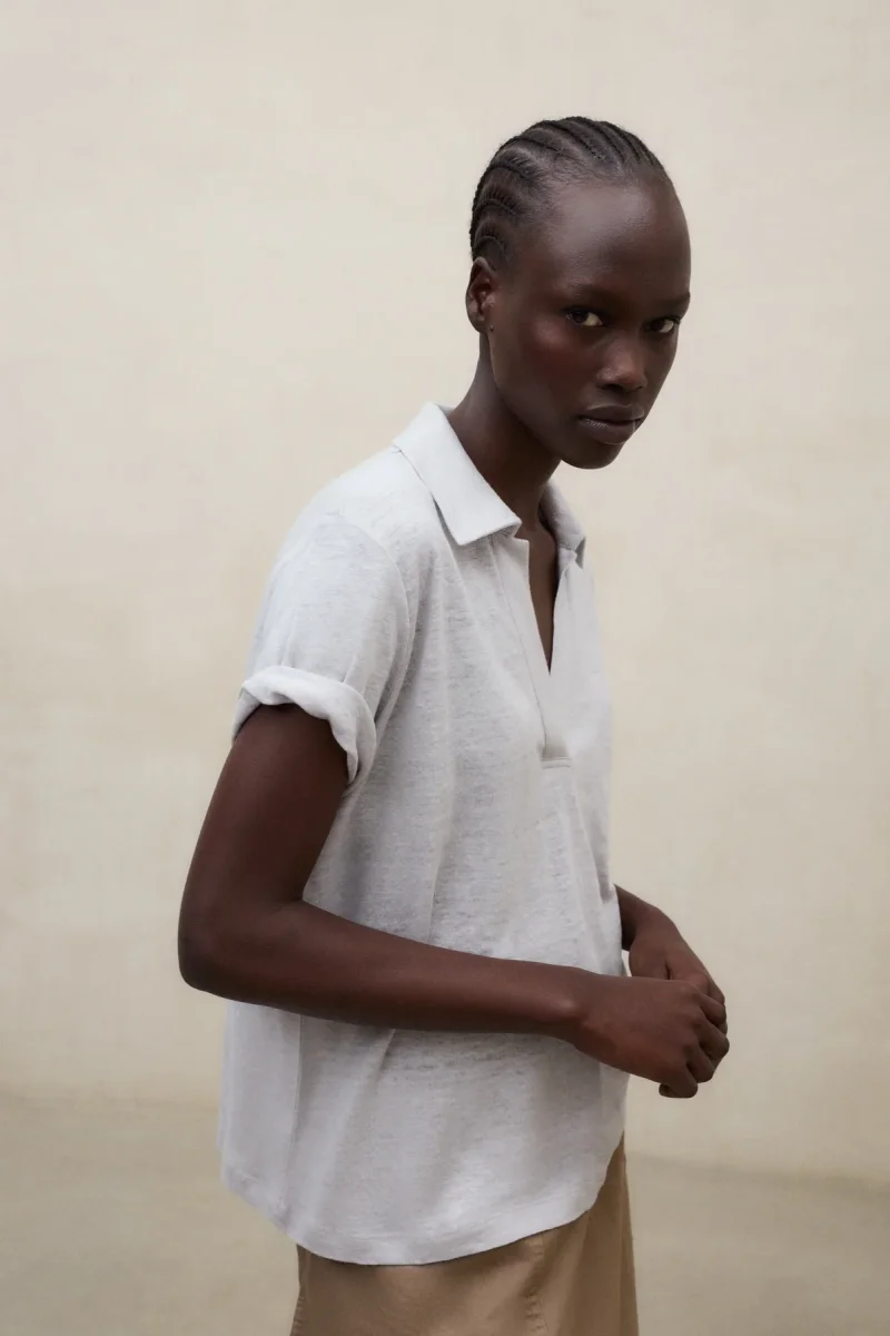 La Camiseta Troms está fabricada con un tejido principal de 100% Lino. Fit relajado. Tiene el hombro caído y manga corta.