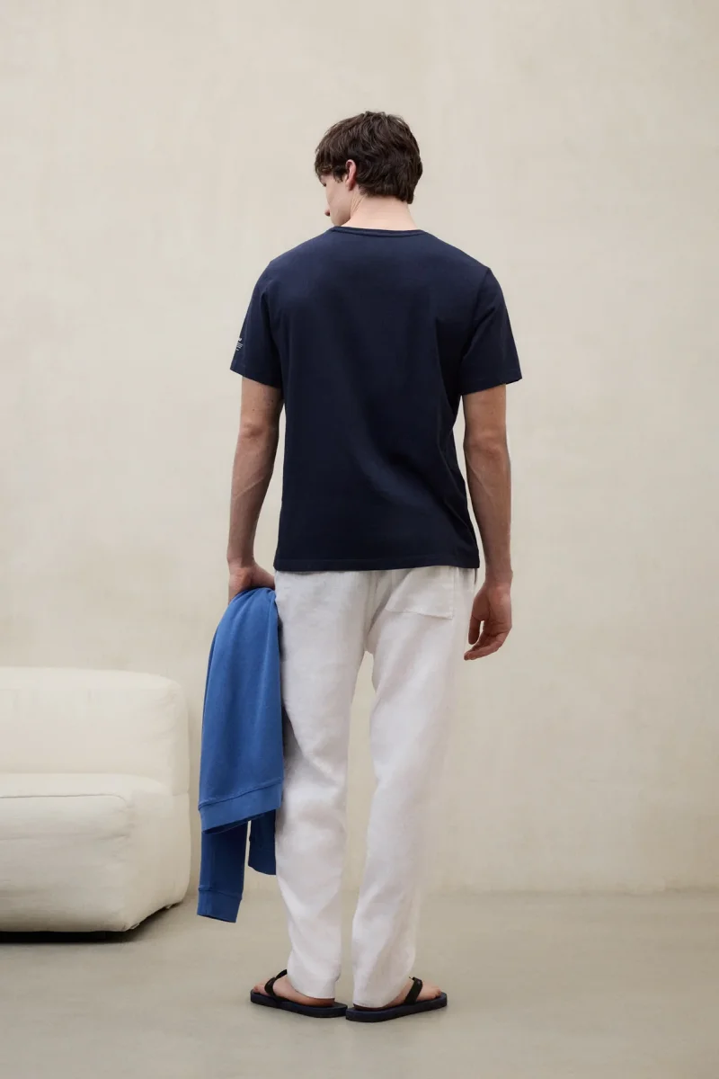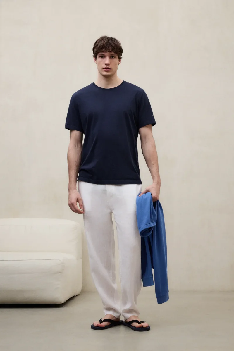 La Camiseta Vent está fabricada con un tejido principal de 100% Algodón reciclado. Fit regular. Cuenta con cuello redondo de canalé. Estampado de marca en la manga izquierda. Teñida y lavada en prenda.