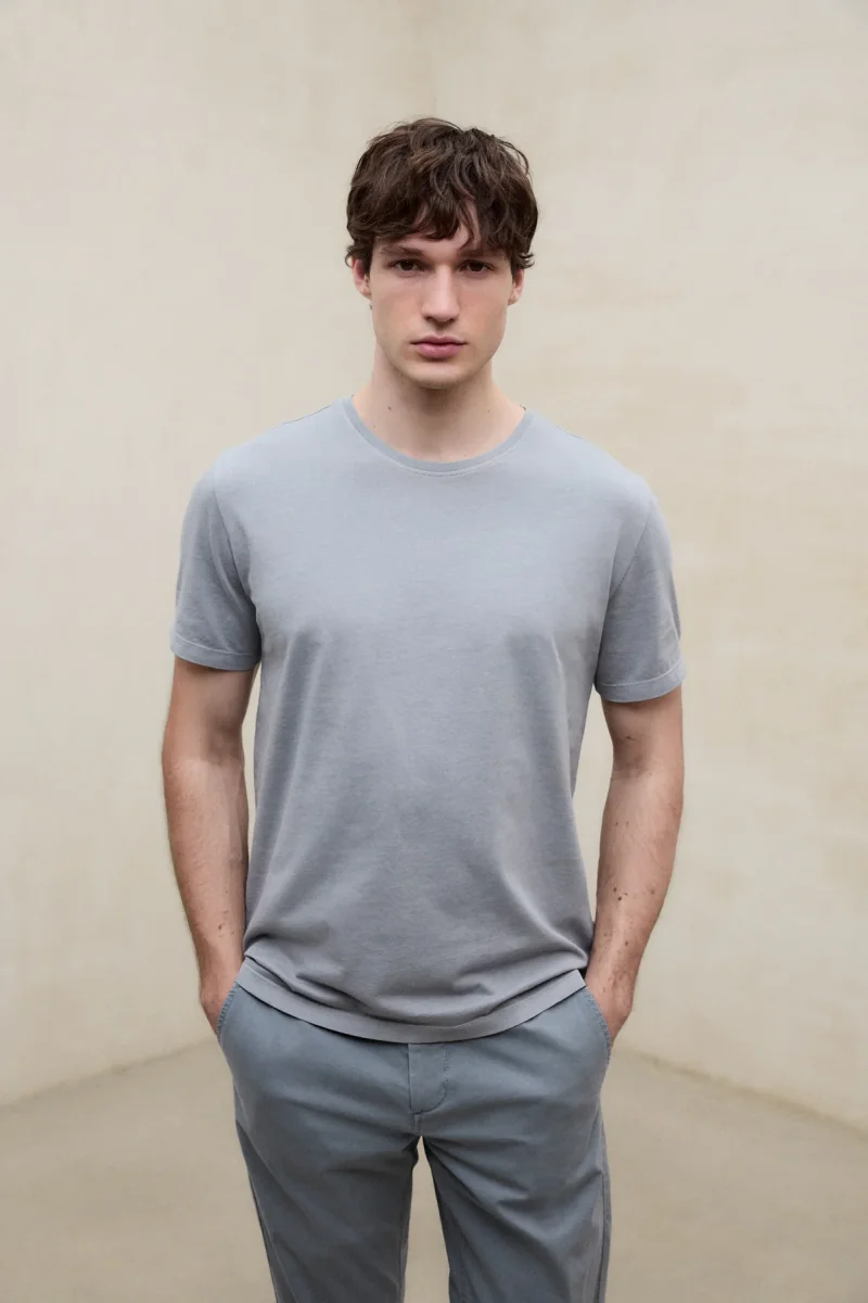 La Camiseta Vent está fabricada con un tejido principal de 100% Algodón reciclado. Fit regular. Cuenta con cuello redondo de canalé. Estampado de marca en la manga izquierda. Teñida y lavada en prenda.