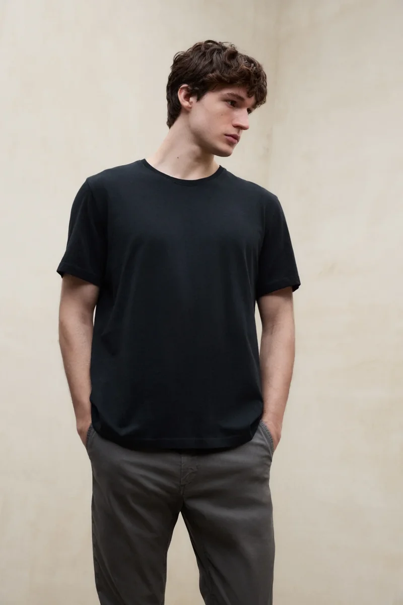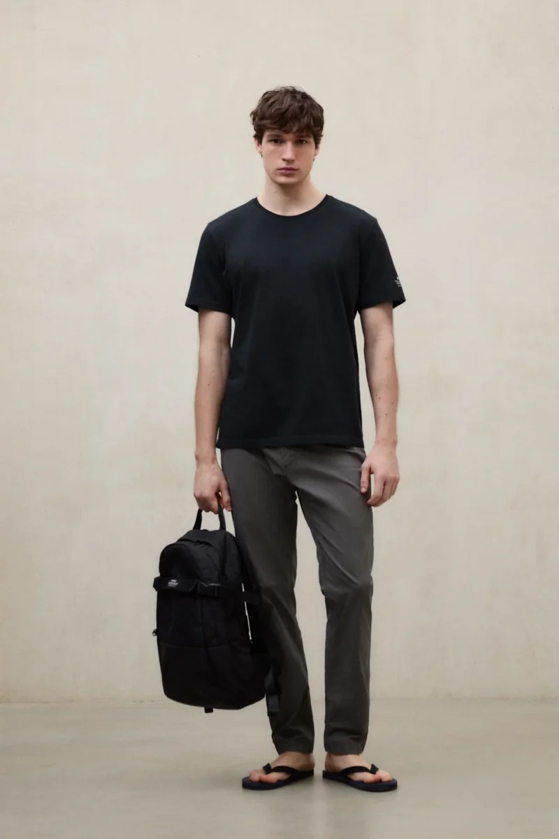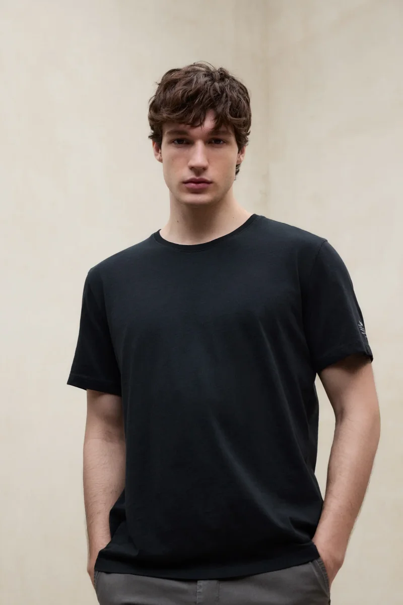 La Camiseta Vent está fabricada con un tejido principal de 100% Algodón reciclado. Fit regular. Cuenta con cuello redondo de canalé. Estampado de marca en la manga izquierda. Teñida y lavada en prenda.