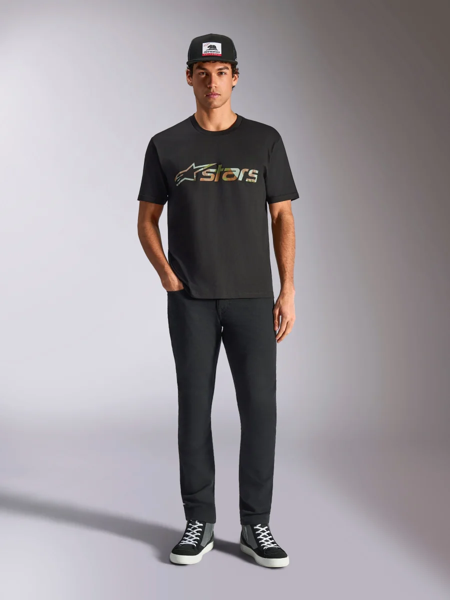 • Camiseta CSF impresa • Logo Astars con relleno de camuflaje en el frente. Impresión suave al tacto • Impresión interna en el cuello, etiquetado externo