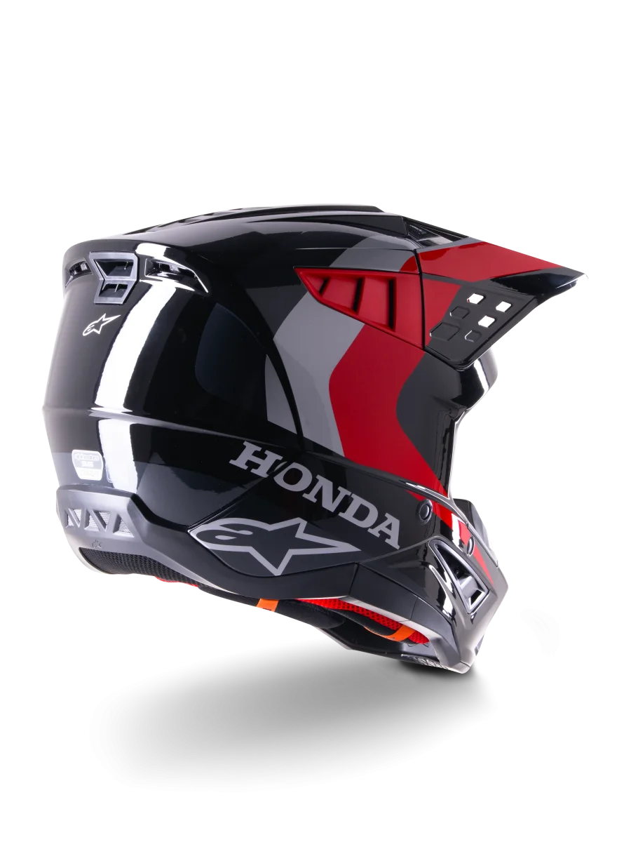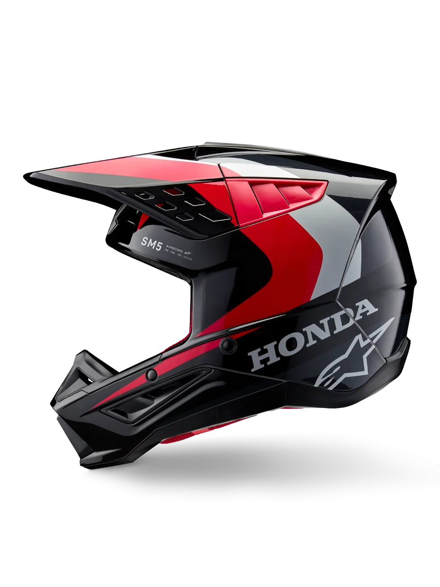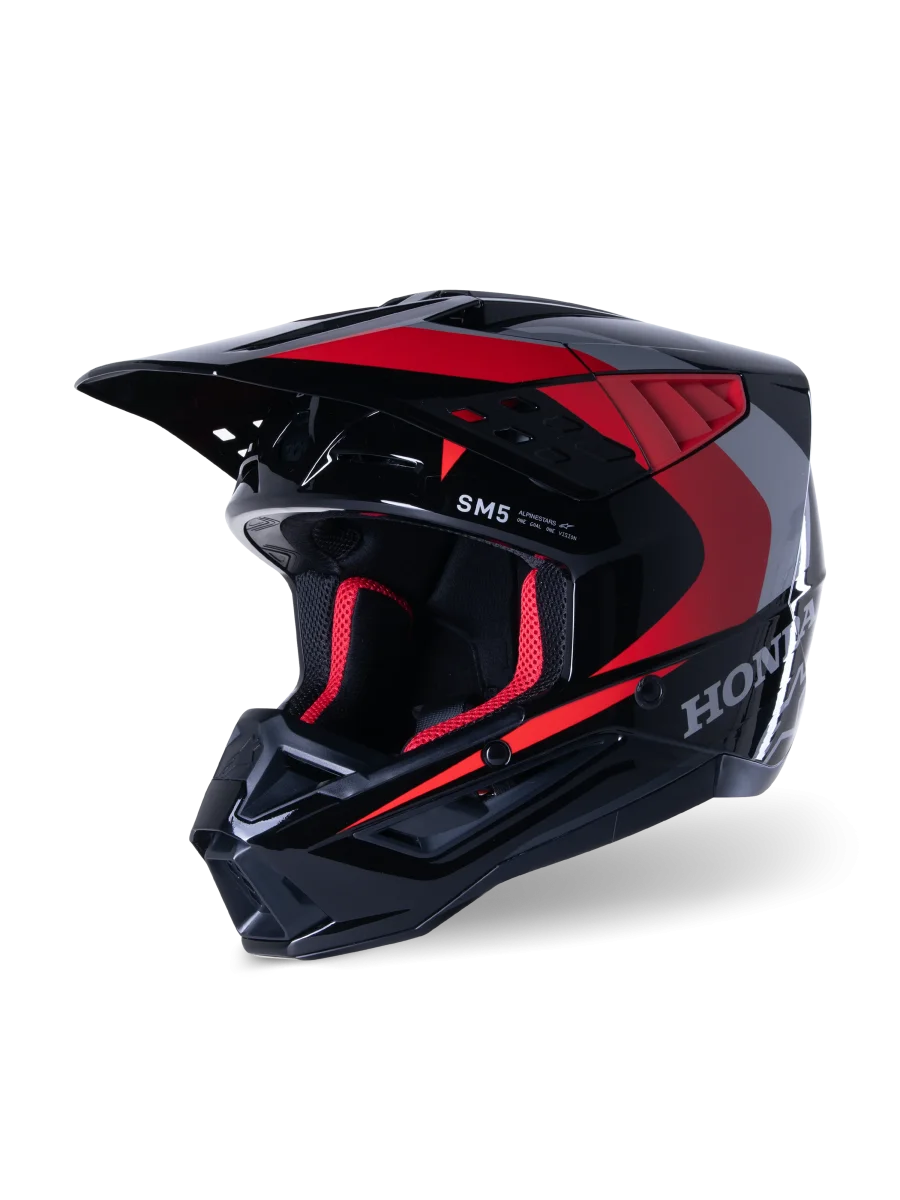 El totalmente nuevo casco Honda SM5 ECE 22.06 / DOT ha sido diseñado para proporcionar a los pilotos de MX un casco que es seguro y diseñado con propósito para ofrecer protección y comodidad óptimas. El ligero casco Honda SM5 cuenta con una cubierta termo-inyectada que incorpora una mezcla especial de polímeros realzada por diferentes grados de espesor que está diseñada para ofrecer la óptima combinación de protección contra impactos y ligereza. El forro interior cuenta con una construcción de poliestireno expandido (EPS) de 7 piezas incluyendo cinco diferentes densidades de EPS diseñadas para garantizar la densidad correcta en el área correcta para una mejor absorción de impactos.