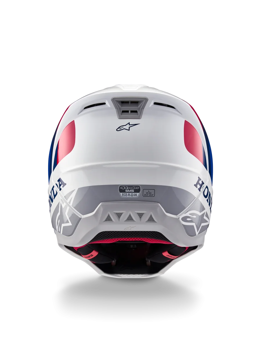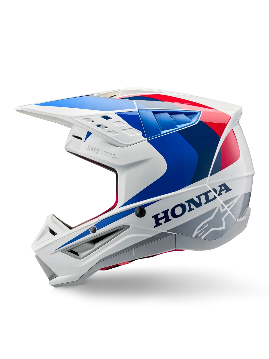 El totalmente nuevo casco Honda SM5 ECE 22.06 / DOT ha sido diseñado para proporcionar a los pilotos de MX un casco que es seguro y diseñado con propósito para ofrecer protección y comodidad óptimas. El ligero casco Honda SM5 cuenta con una cubierta termo-inyectada que incorpora una mezcla especial de polímeros realzada por diferentes grados de espesor que está diseñada para ofrecer la óptima combinación de protección contra impactos y ligereza. El forro interior cuenta con una construcción de poliestireno expandido (EPS) de 7 piezas incluyendo cinco diferentes densidades de EPS diseñadas para garantizar la densidad correcta en el área correcta para una mejor absorción de impactos.