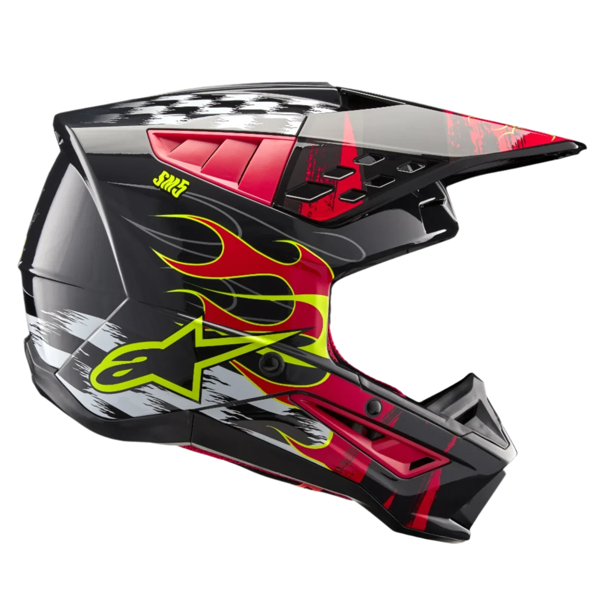 El casco SM5 ha sido diseñado para proporcionar a los pilotos de MX un casco que es seguro y diseñado específicamente para ofrecer una protección y comodidad óptimas. El ligero casco SM5 cuenta con una carcasa termo-inyectada que incorpora una mezcla especial de polímeros realzada por diferentes grados de grosor que está diseñada para ofrecer la combinación óptima de protección contra impactos y ligereza, mientras que el forro EPS de cinco densidades asegura la densidad correcta en el área correcta para una mejor absorción de impactos.