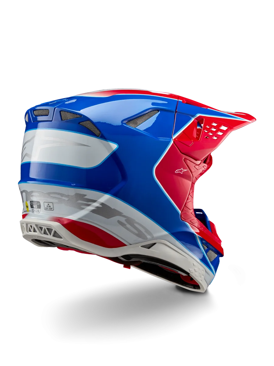 El objetivo de la familia de cascos Alpinestars Supertech era crear los cascos más avanzados, protectores y que mejoraran el rendimiento posible para los pilotos de todo el mundo. Con el S-M10, el equipo de desarrollo de cascos de Alpinestars diseñó el casco para ofrecer la mezcla perfecta de excelente ventilación e insuperable comodidad, para crear un casco con el peso más ligero posible, todo sin comprometer ningún otro aspecto.