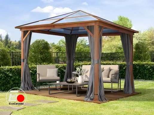 Cenador Forest Deluxe, gris loft, 3x3m con óptica de roble