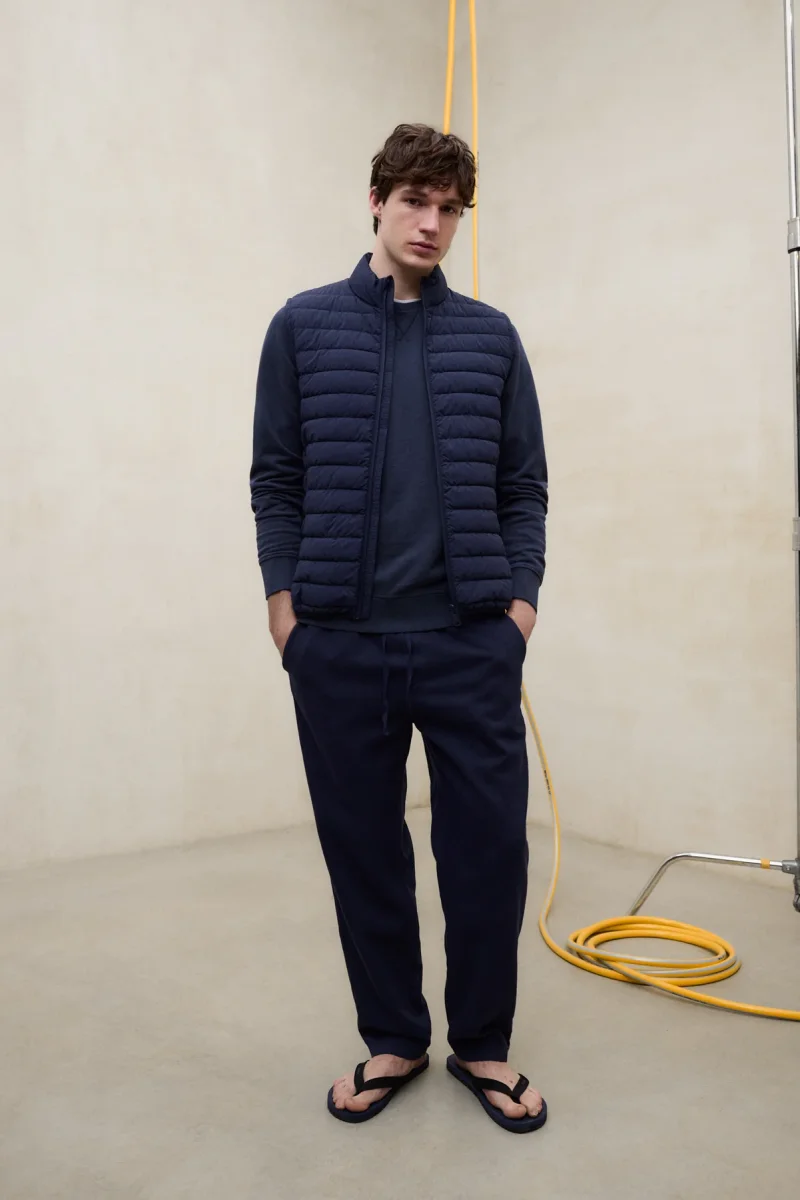 El Chaleco Bels está fabricado con un tejido principal de 100% Poliamida reciclada. Fit regular. Cuenta con cierre frontal con cremallera personalizada y bolsillos frontales en la parte inferior con cremalleras internas. Puños y parte inferior con borde elástico.