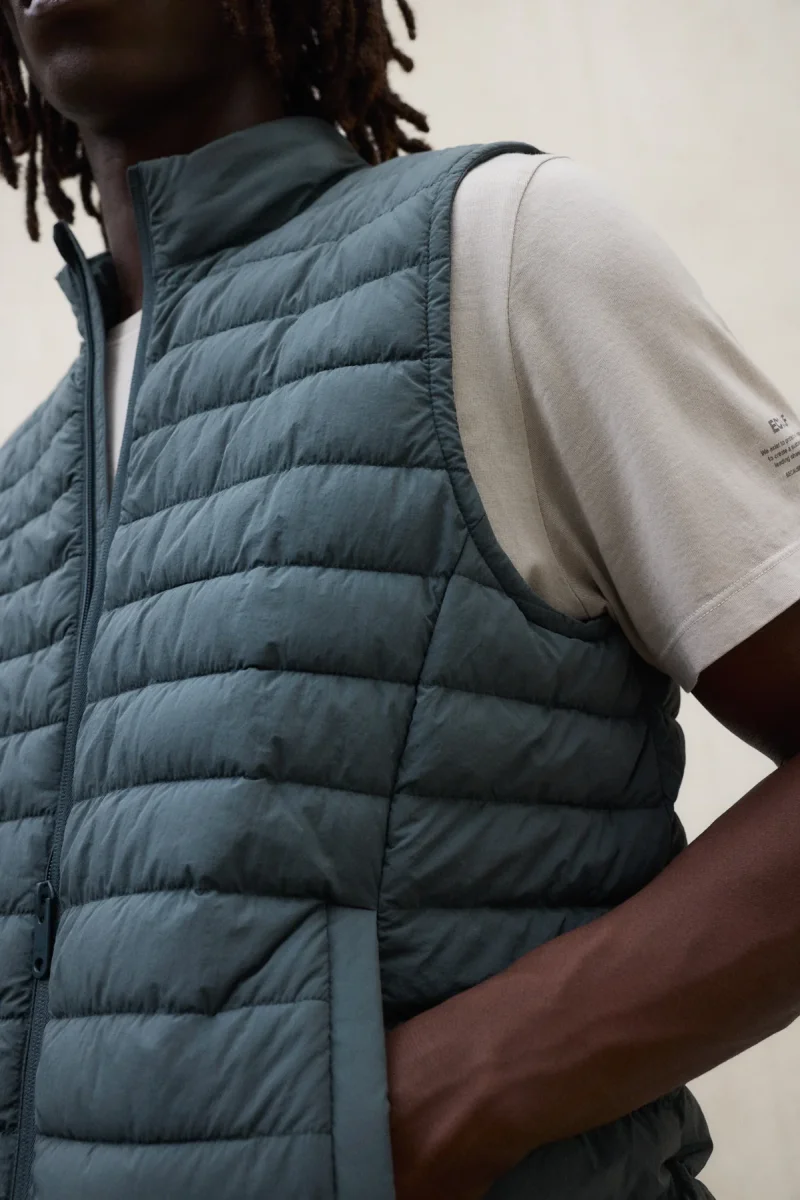 El Chaleco Bels está fabricado con un tejido principal de 100% Poliamida reciclada. Fit regular. Cuenta con cierre frontal con cremallera personalizada y bolsillos frontales en la parte inferior con cremalleras internas. Puños y parte inferior con borde elástico.