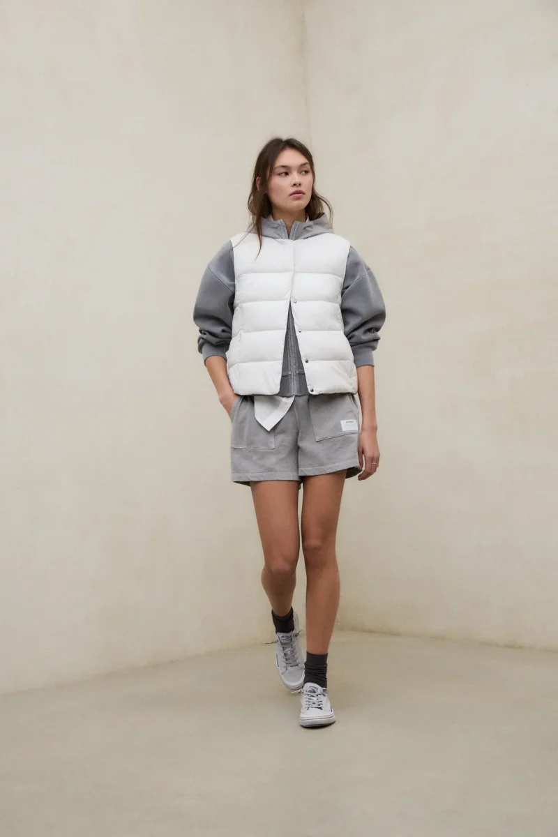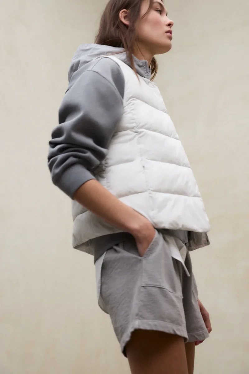 El Chaleco Olimpo está fabricado con un tejido principal de 100% Poliéster reciclado. Fit regular. Cuello redondo y bolsillos laterales con cremallera.