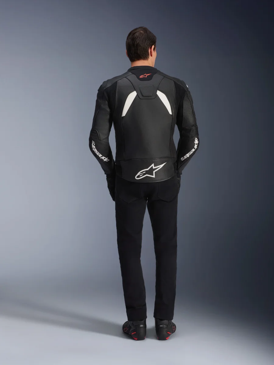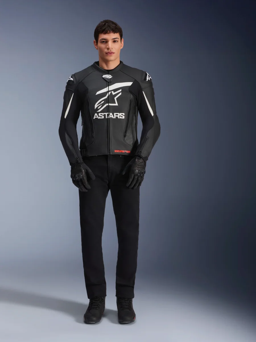 Para completar la construcción del chasis del GP Plus V4, se ha aplicado una mezcla de cuero bovino de competición y cuero bovino normal, con material técnico elástico en el pecho, los hombros, la nuca y la parte interna de los brazos. La pieza también cuenta con controles deslizantes externos para hombros DFS Dynamic Friction Shield con protector Nucleon Flex Plus CE Nivel 1 en su interior. En su interior, la chaqueta incluye un chaleco térmico desmontable de 80 g e incorpora grandes orificios de ventilación de apertura directa en el abdomen para garantizar la transpirabilidad y el control de temperatura.