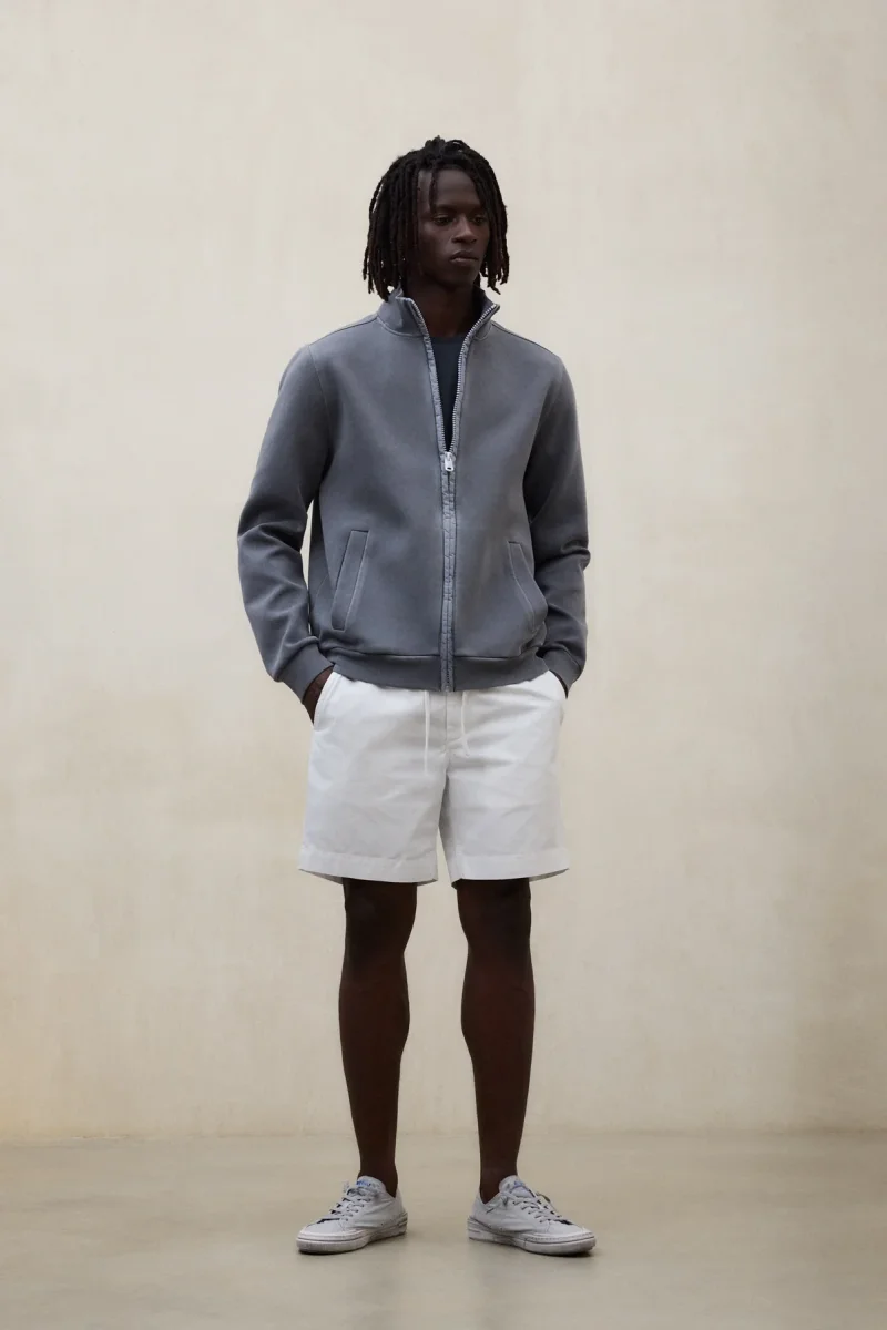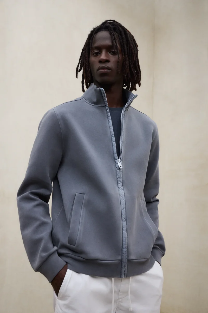 La Chaqueta Gus está fabricada con un tejido principal de 80% Algodón orgánico. Fit regular. Cuenta con cuello alto, cuello interior tejido, cierre de cremallera central, bolsillos frontales y efecto lavado.