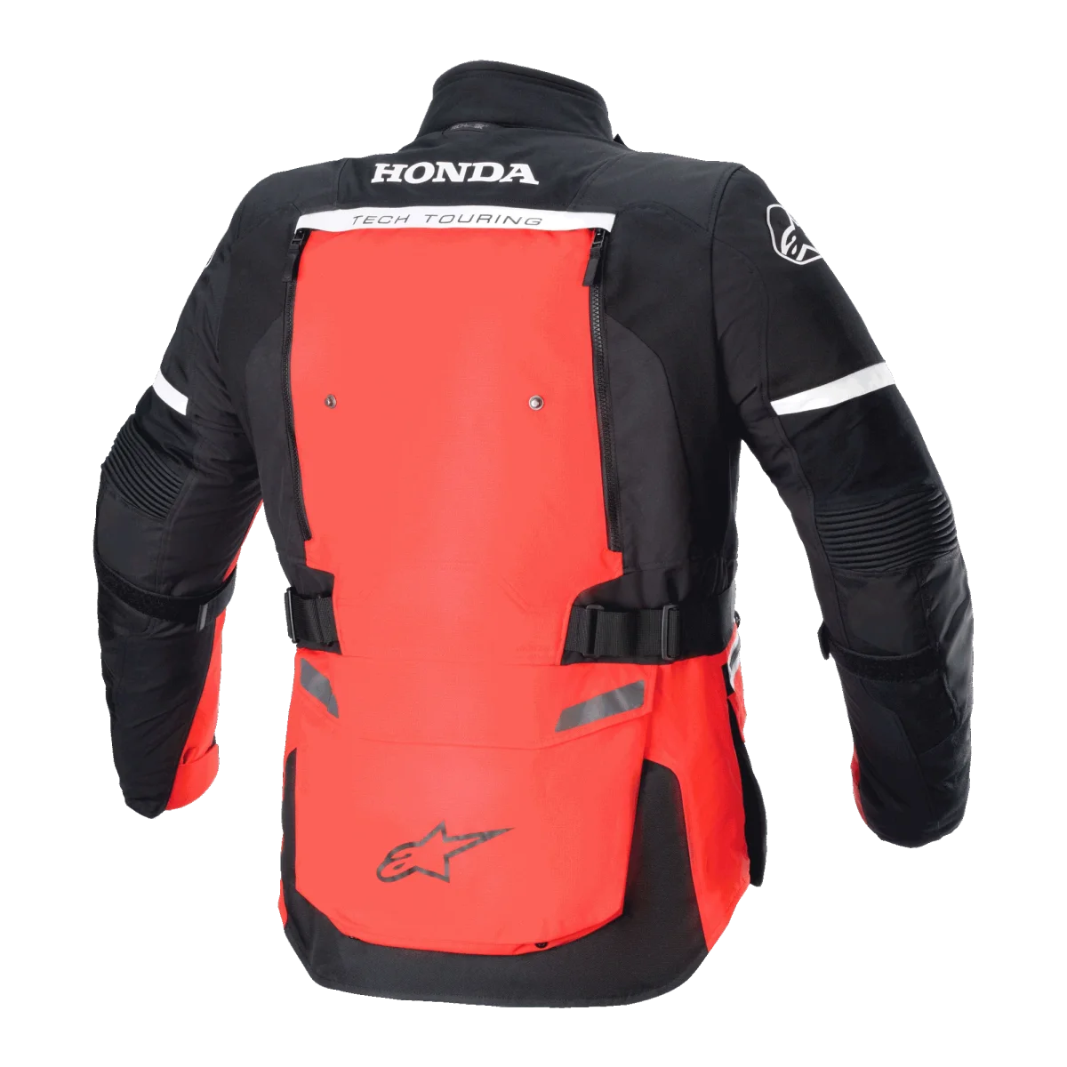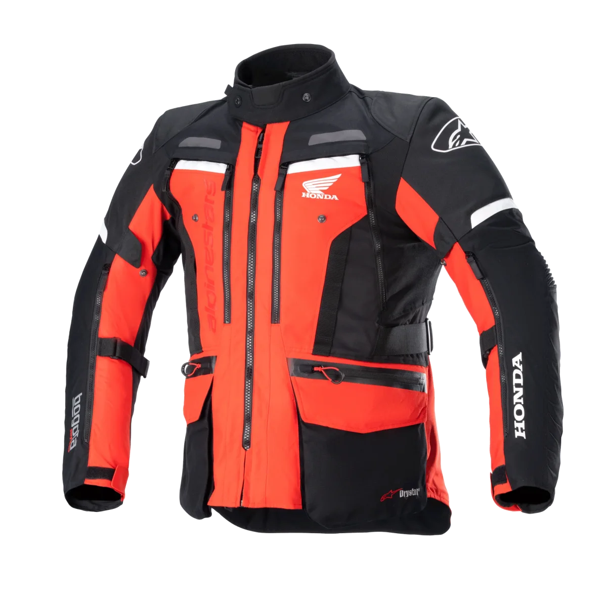 La chaqueta Honda Bogotá Pro Drystar® para todas las estaciones está diseñada para ofrecer una protección, rendimiento climático y comodidad óptimos e incorpora la membrana Drystar® de Alpinestars para un rendimiento 100% impermeable y transpirable. El sistema de tres capas «forro para soltar» permite configurar la chaqueta según las condiciones, además de ser rápido y fácil de usar. La Bogotá tiene grandes paneles de malla para proporcionar flujo de aire y enfriamiento, así como amplios paneles de ventilación directa en el pecho, espalda completa y brazos, para un control efectivo del clima en cualquier condición.