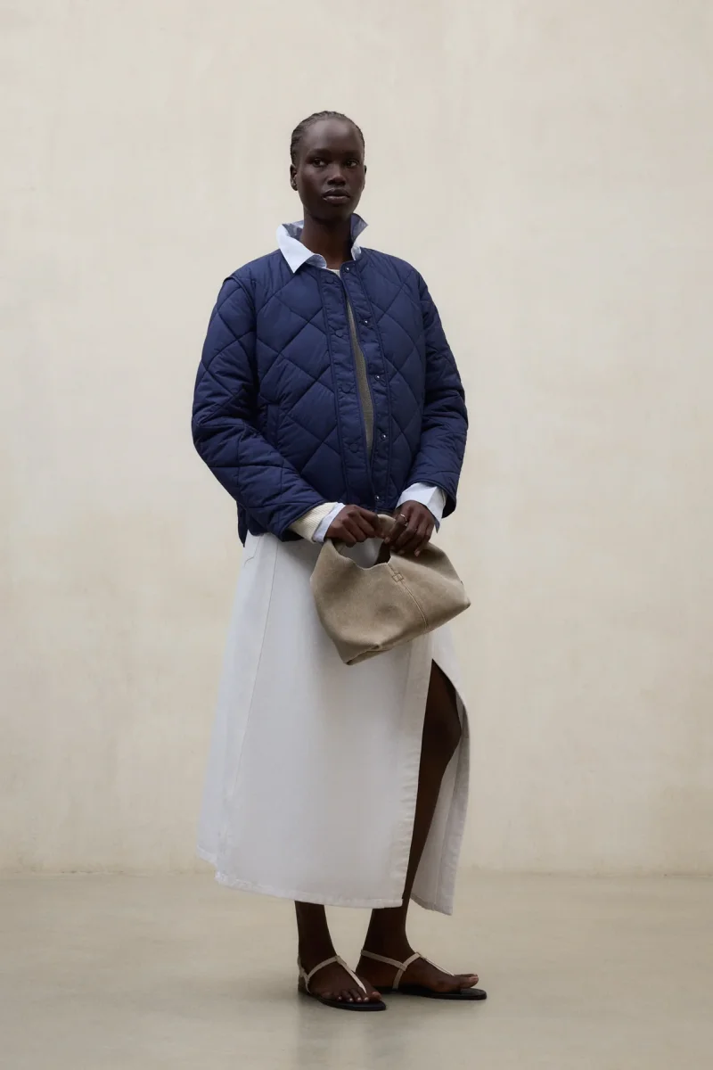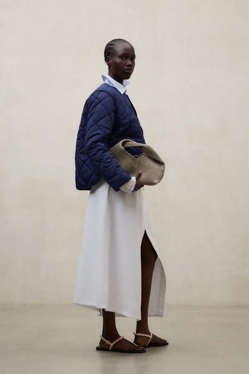La Chaqueta Musa Rhomb está fabricada con un tejido principal de 100% Poliéster reciclado. Fit regular. Largo hasta la cadera. Cuello redondo, dos bolsillos frontales con cierre de broches y aberturas laterales.