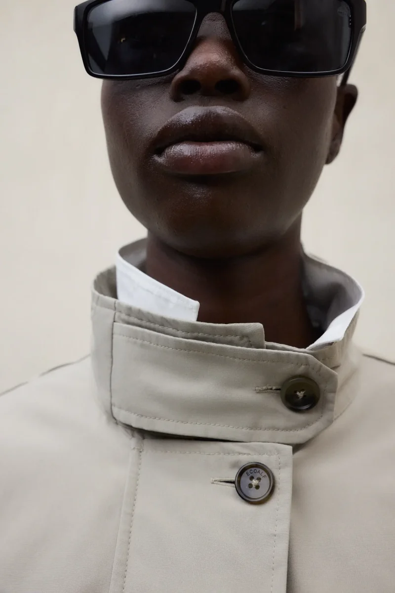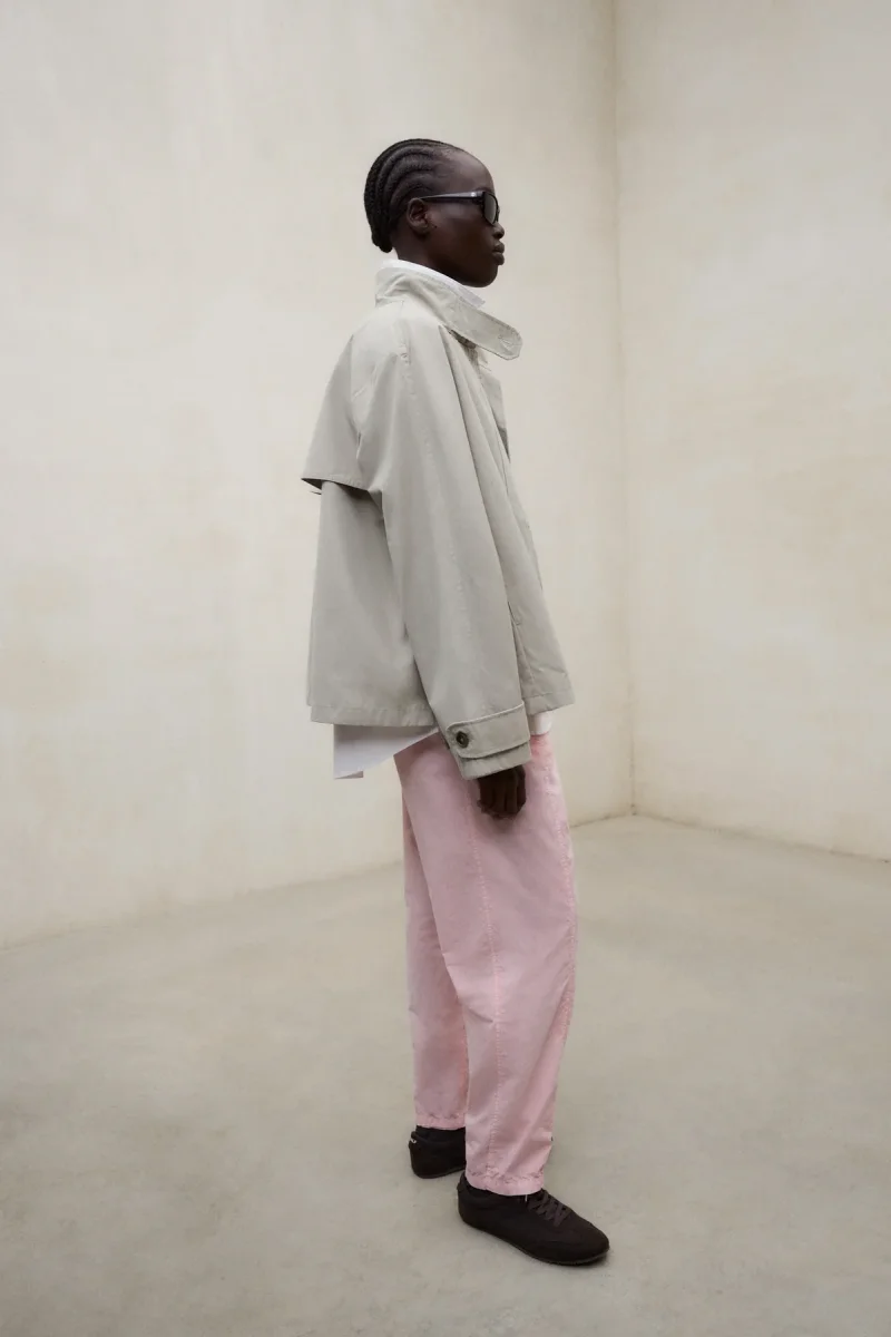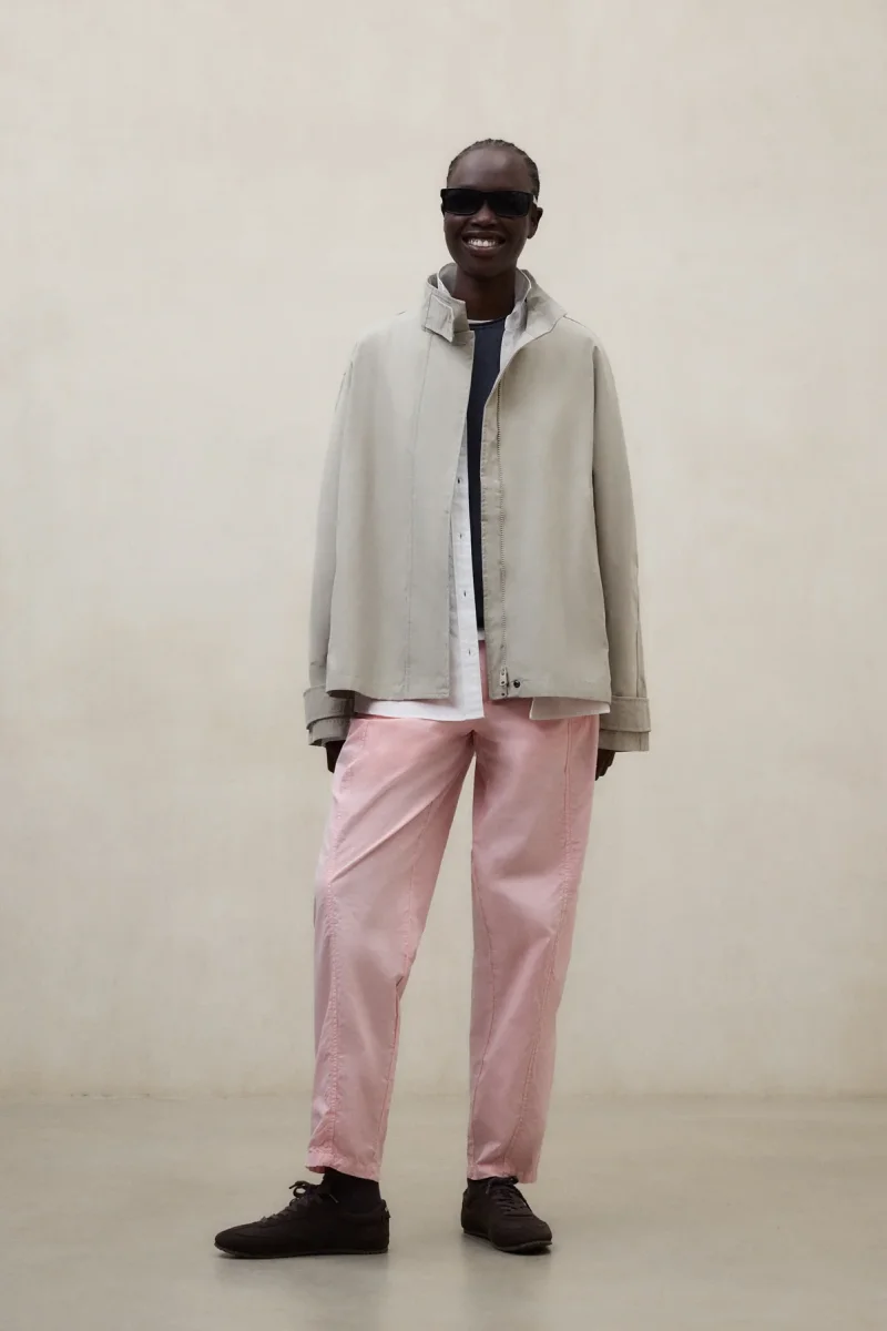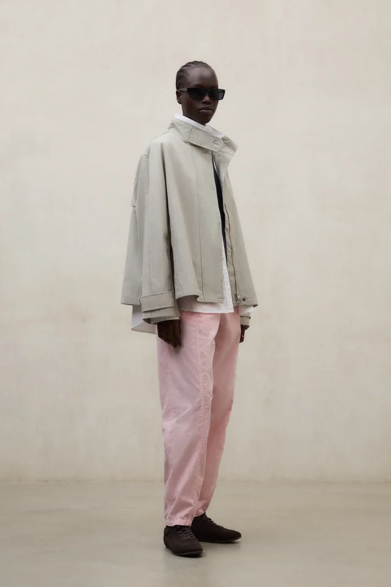 La Chaqueta Nebu está fabricada con un tejido principal de 54% Poliéster reciclado. Fit oversize. Cuello alto con cierre de botón. Bolsillos laterales. Puños ajustables. Pliegue en la espalda.