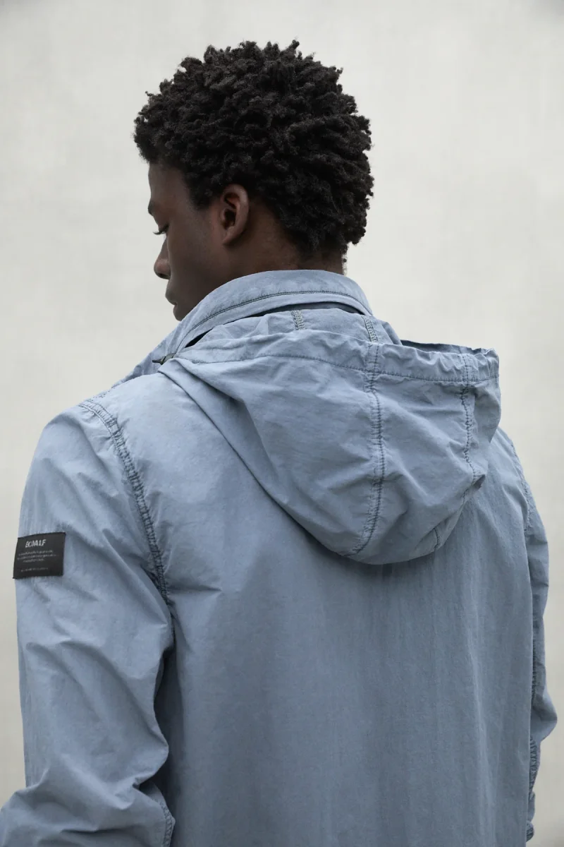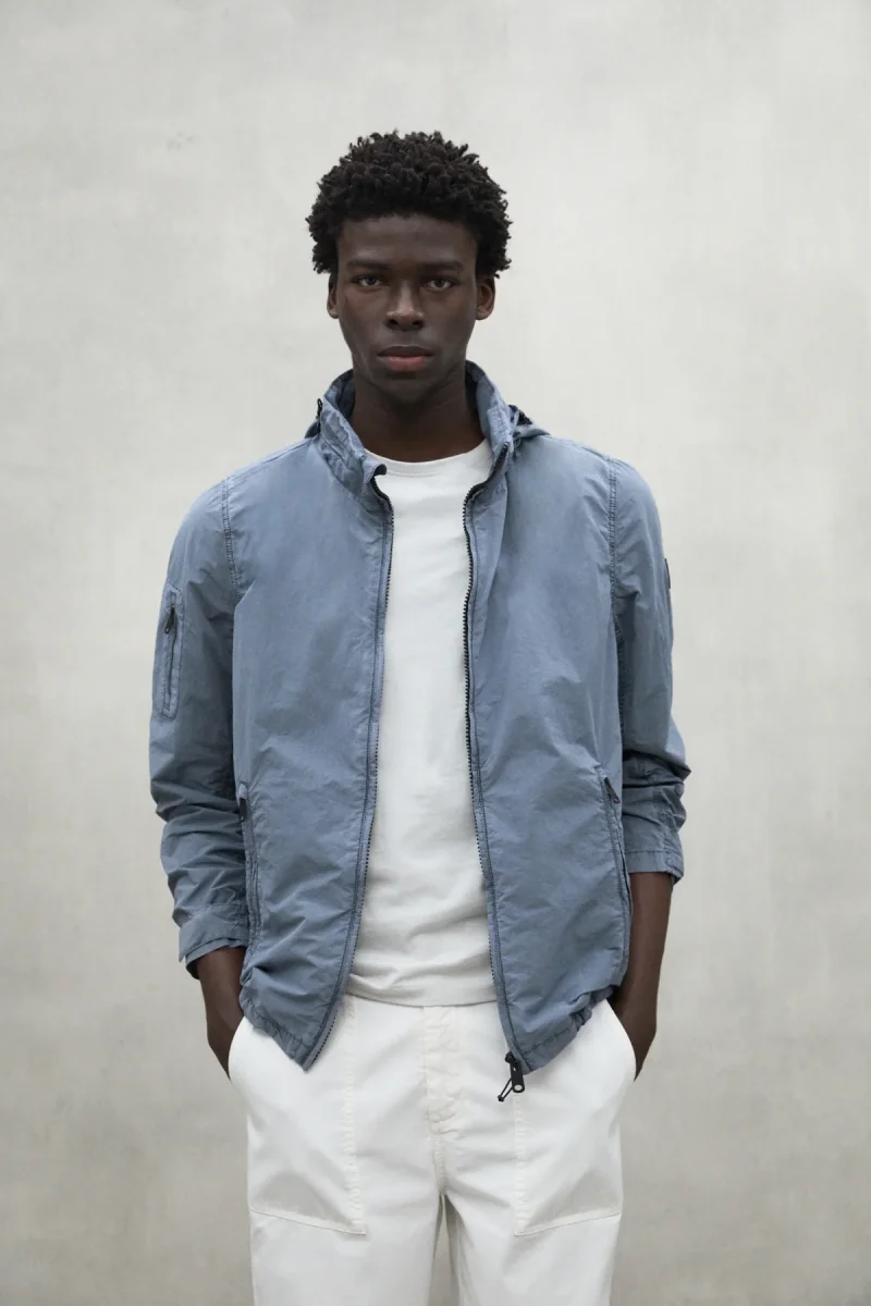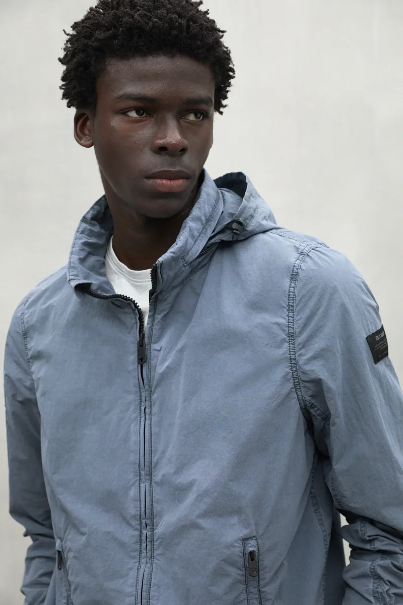 La chaqueta Rigi, confeccionada con un material principal de 72% poliamida reciclada, es repelente al agua. Su diseño incluye múltiples bolsillos y una capucha plegada, ideal para llevar a cualquier lugar.