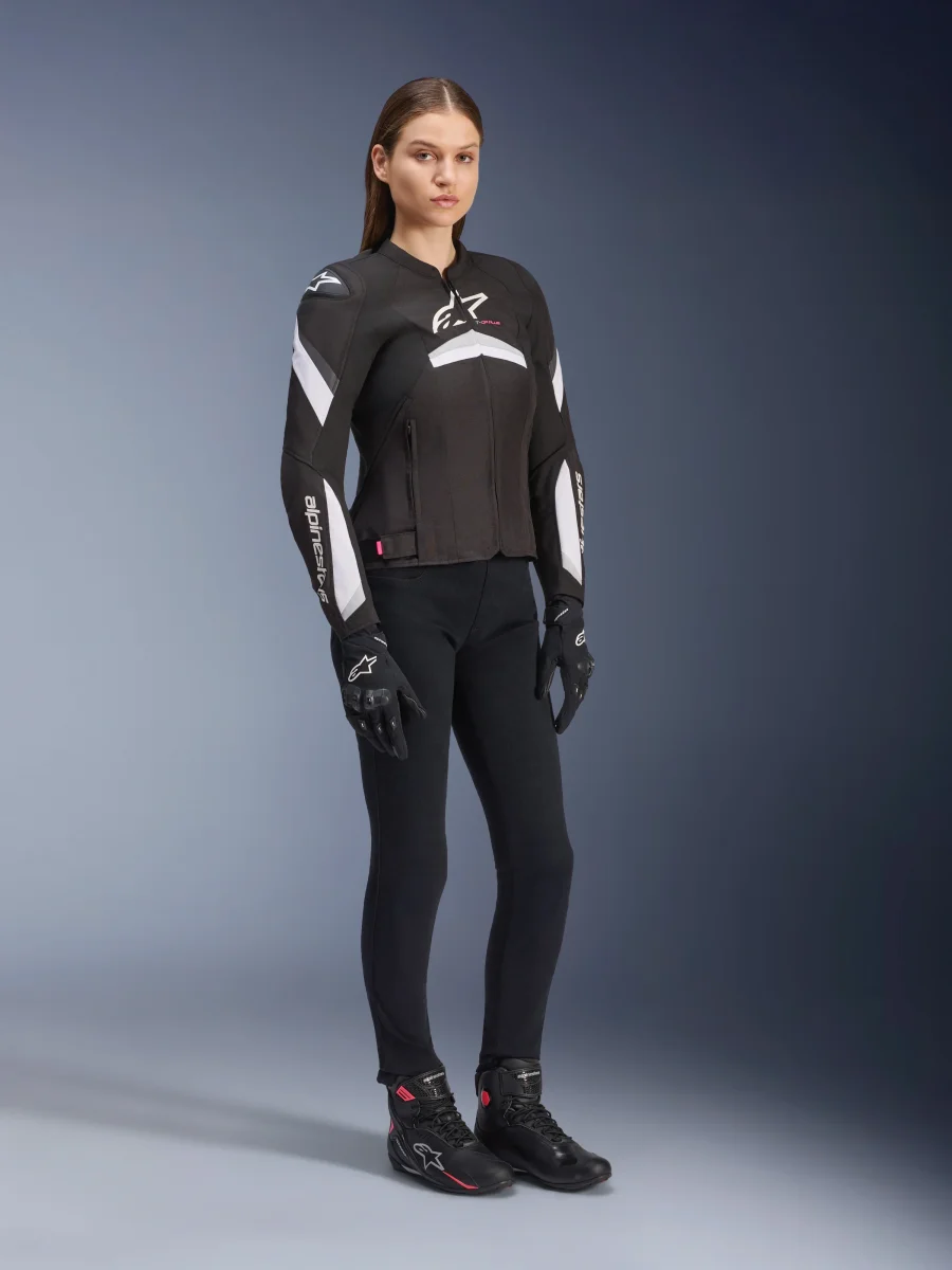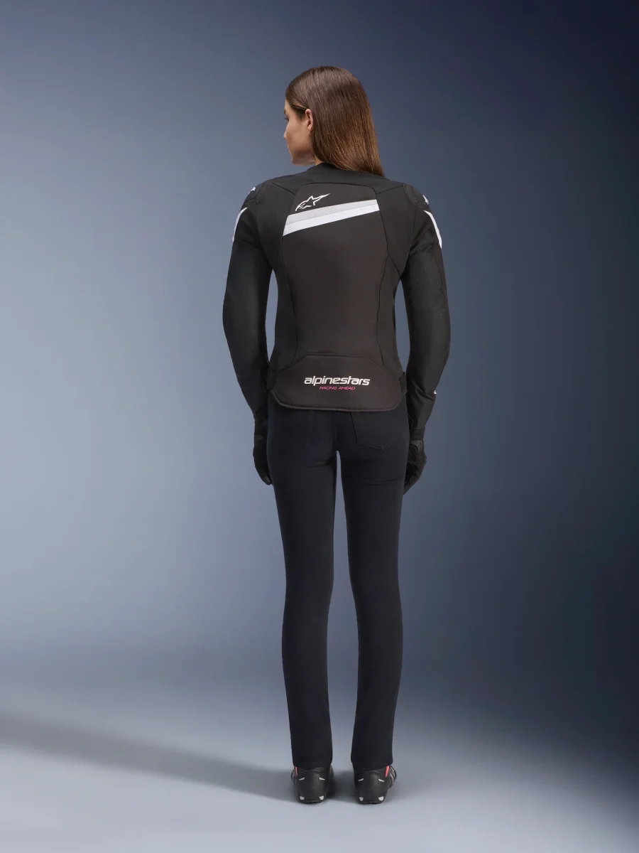 Anatómicamente diseñada para un ajuste específico de mujer, la chaqueta de textil, Stella T-GP Plus R v4, está optimizada para una comodidad superior del piloto en la posición de conducción y cuenta con un ajuste ‘Sport’ con brazos precurvados para un rendimiento máximo de conducción. Esta chaqueta también está equipada con un chaleco térmico acolchado desmontable, que permite adaptarlo a las condiciones, añadiendo a su versatilidad para todo tipo de clima.