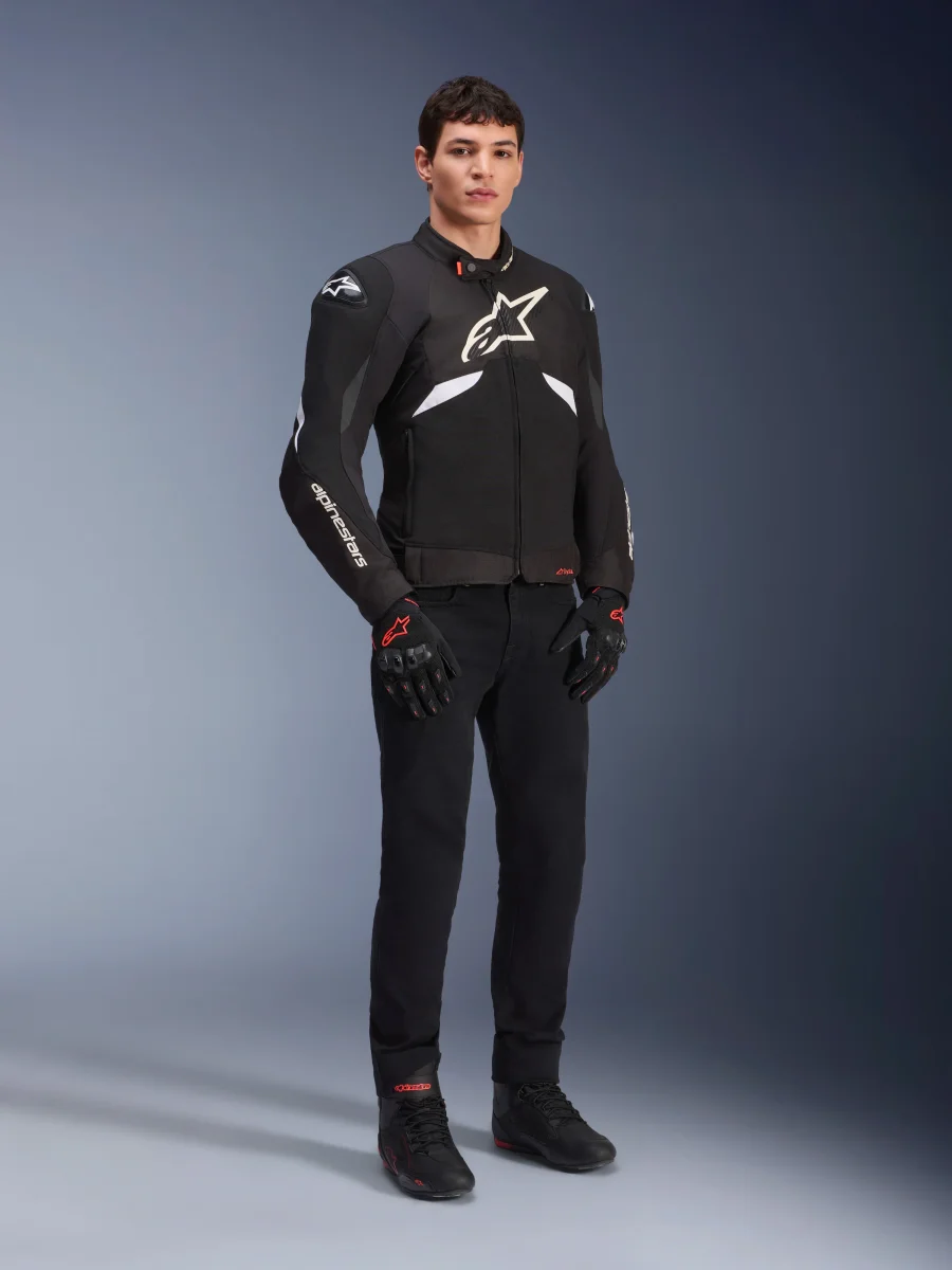 La Chaqueta T-GP R V3 Drystar® es una chaqueta textil deportiva impermeable derivada de las carreras, fabricada con materiales elásticos avanzados y que presenta una silueta deportiva confeccionada en 3D con detalles refinados. La silueta está hecha con un nuevo patrón que le da a la chaqueta una apariencia de chaqueta de cuero auténtica, respaldada por la armadura extendida de codo derivada de las carreras. La chaqueta proporciona comodidad sin igual y libertad de movimiento a través del uso extensivo de materiales elásticos. Más de la mitad de la chaqueta está hecha con materiales tech stretch y stretch softshell colocados estratégicamente, mientras que el resto está construido con una mezcla de polyfabric 450D y 600D para refuerzo. En cuanto a protección, los deslizadores externos DFS y la armadura Nucleon Flex Plus Nivel 1 protegen los hombros del piloto con armadura extendida GP-R Lite en los codos y antebrazos. La Chaqueta T-GP R V3 Drystar® ligera e impermeable proporciona rendimiento transpirable con gestión climática versátil. Para gestión climática adicional, la chaqueta tiene un forro térmico elástico removible que presenta una mezcla de aislamiento PrimaLoft® de 100g en el torso y 80g de aislamiento en los brazos, que funciona en combinación con las ventilaciones de apertura directa con cremallera en los costados del piloto y perforación láser oculta en la espalda del piloto. La chaqueta térmica desmontable también presenta una nueva capa tecnológica óptima de sujeción en la muñeca con un sistema de velcro de 360 grados y terciopelo suave en la parte interior de la muñeca.