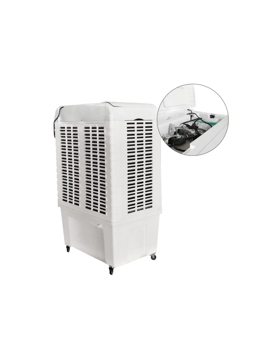 El Enfriador Evaporativo Portátil 18.000 m³ es la opción perfecta para mantener frescos grandes espacios al aire libre con eficacia y comodidad. Su potente capacidad de enfriamiento, bajo consumo energético y facilidad de transporte lo convierten en una solución versátil para cualquier evento o entorno. Con su diseño robusto y características avanzadas, este climatizador no solo garantiza una temperatura agradable, sino que también mejora la calidad del aire, creando un ambiente saludable y confortable.