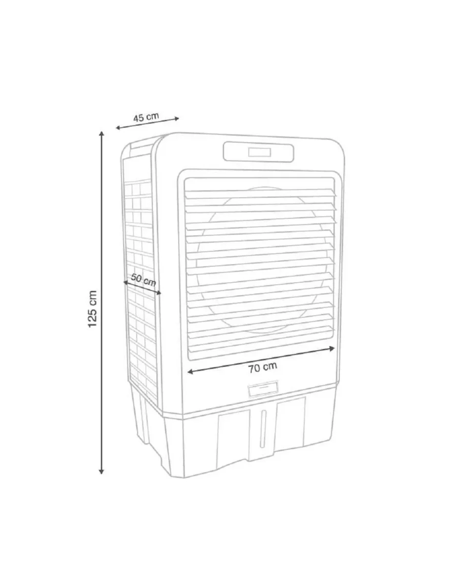 Con una capacidad de enfriamiento de 18.000 m³, este climatizador utiliza un sistema de evaporación de agua para reducir la temperatura ambiente. Incluye un depósito de agua y se puede utilizar con cubitos de hielo para mejorar el rendimiento de enfriamiento. Además, su diseño robusto y su potencia de 750 W aseguran un funcionamiento efectivo en diversas condiciones y viene equipado con ruedas para una movilidad fácil y conveniente.