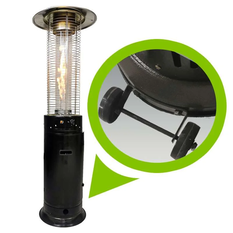 La Estufa Exterior Portátil Tipo Cilindro es ideal para mantener un clima cálido en entornos abiertos, ya sea en terrazas de restaurantes, caterings en jardines o eventos con carpas. Su diseño portátil con ruedas facilita su movilidad y su sistema de encendido eléctrico monomando garantiza facilidad de uso.