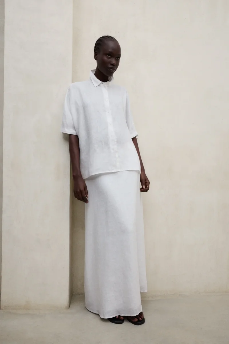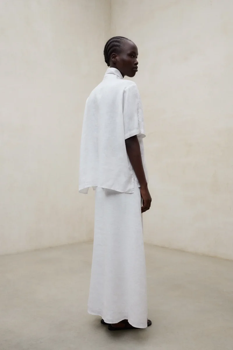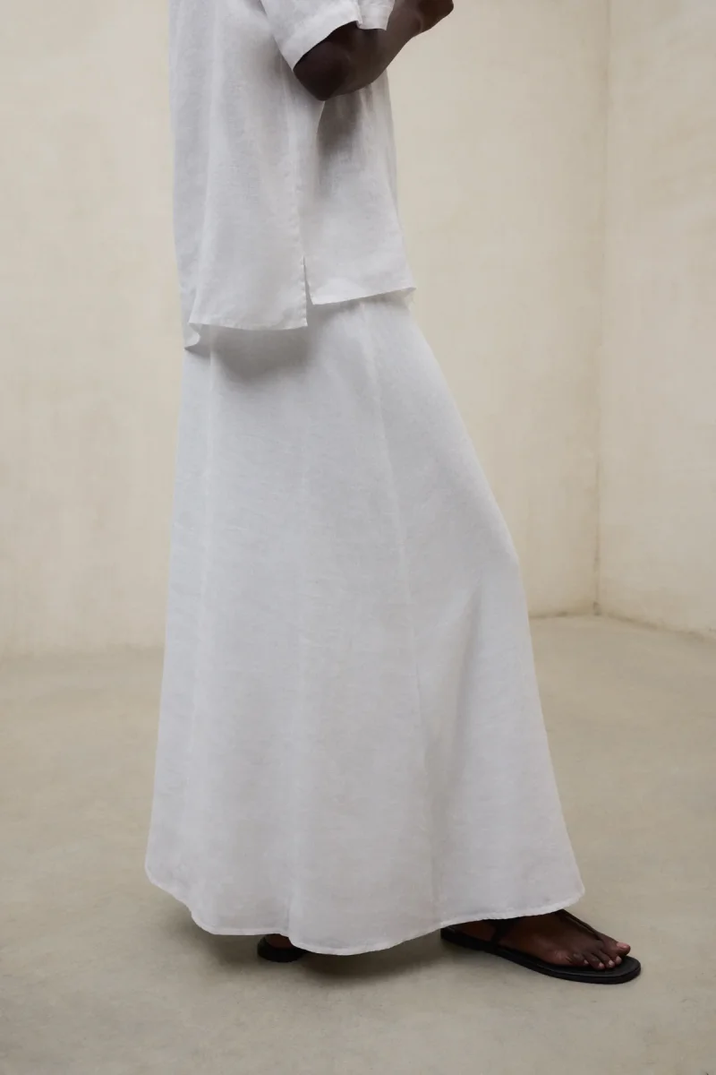 La Falda Beth está fabricada con un tejido principal de 80% Lino. Corte en forma de A. Cierre con cremallera invisible. Forro interior. Prenda lavada.
